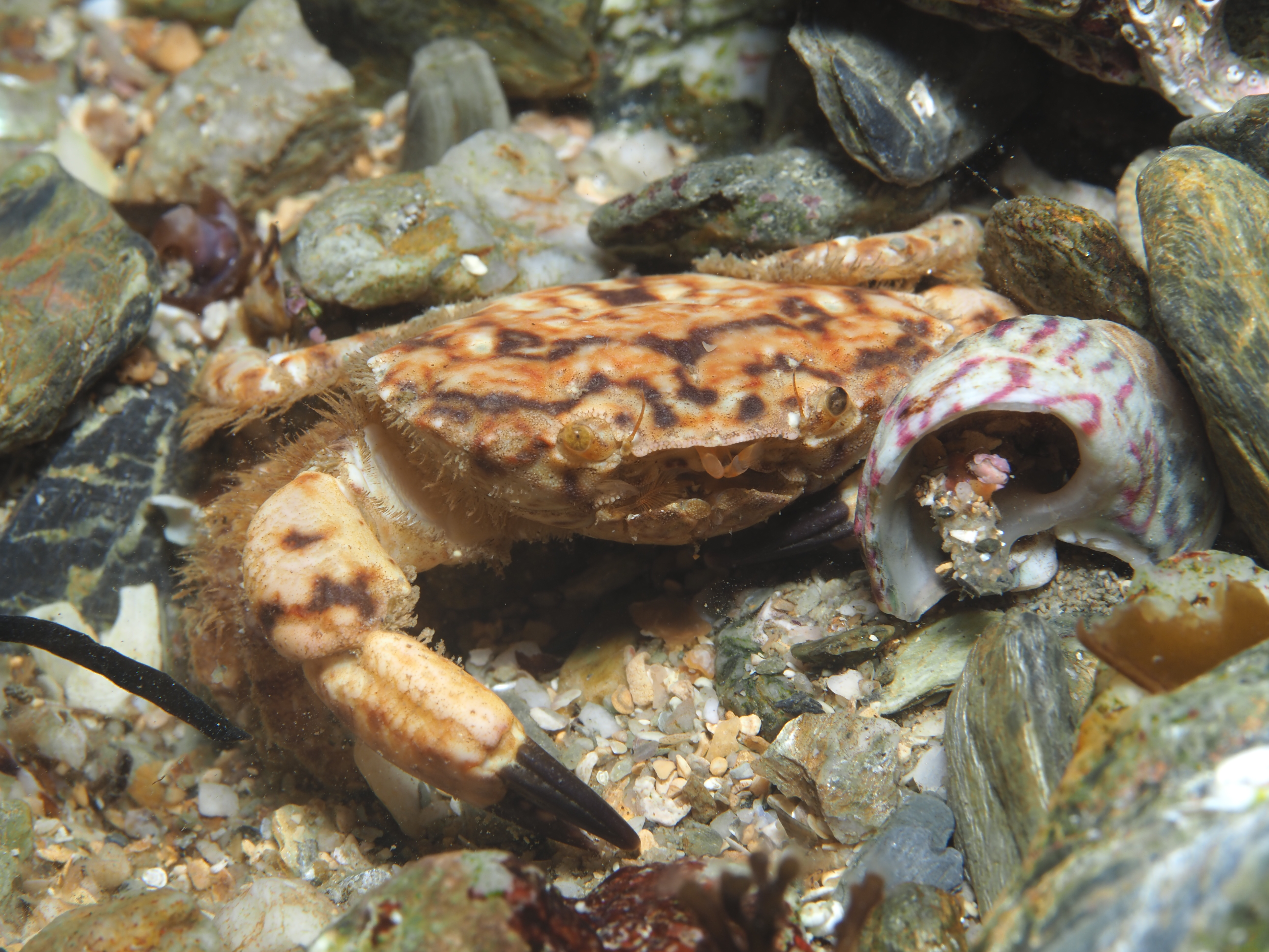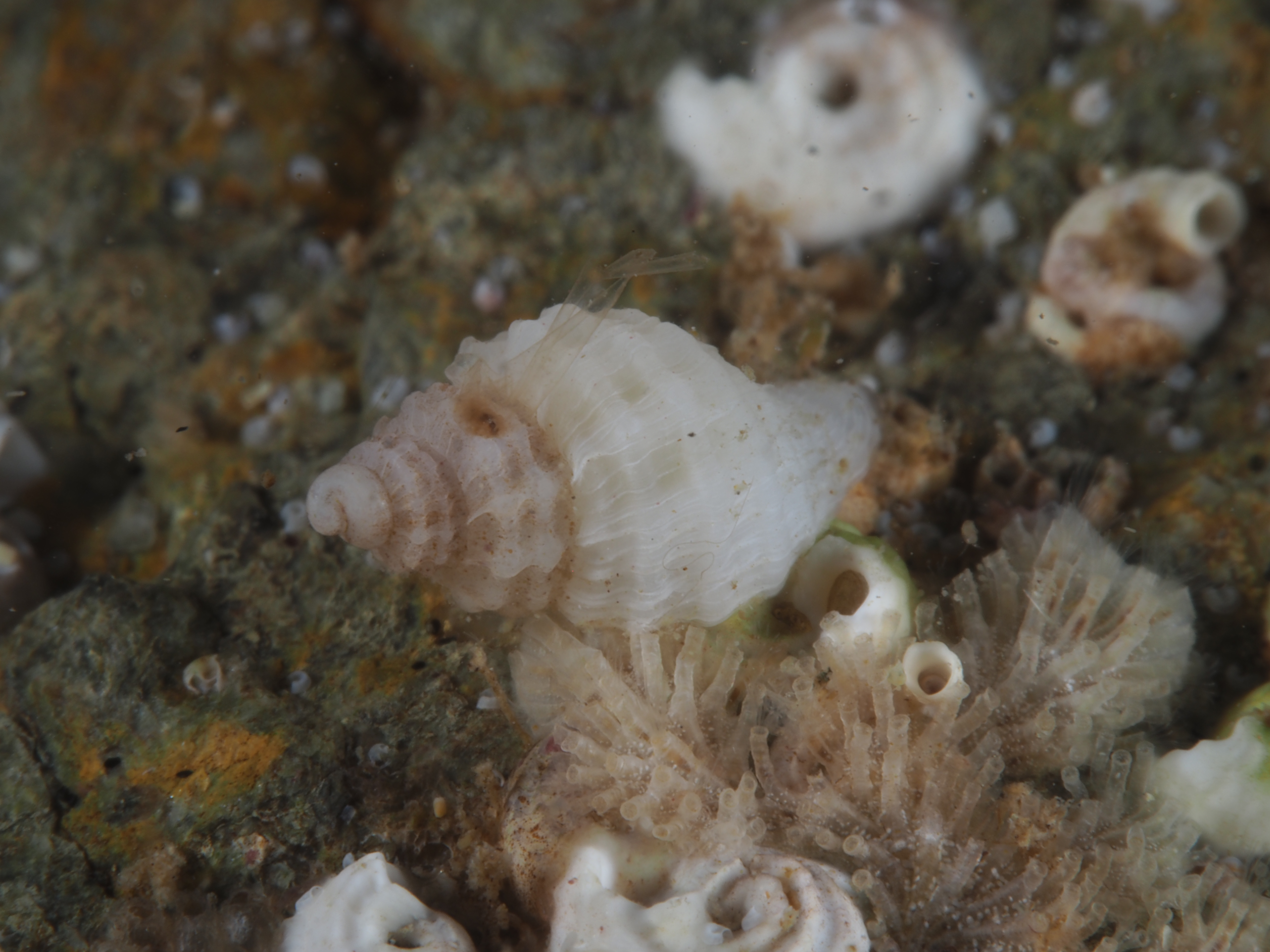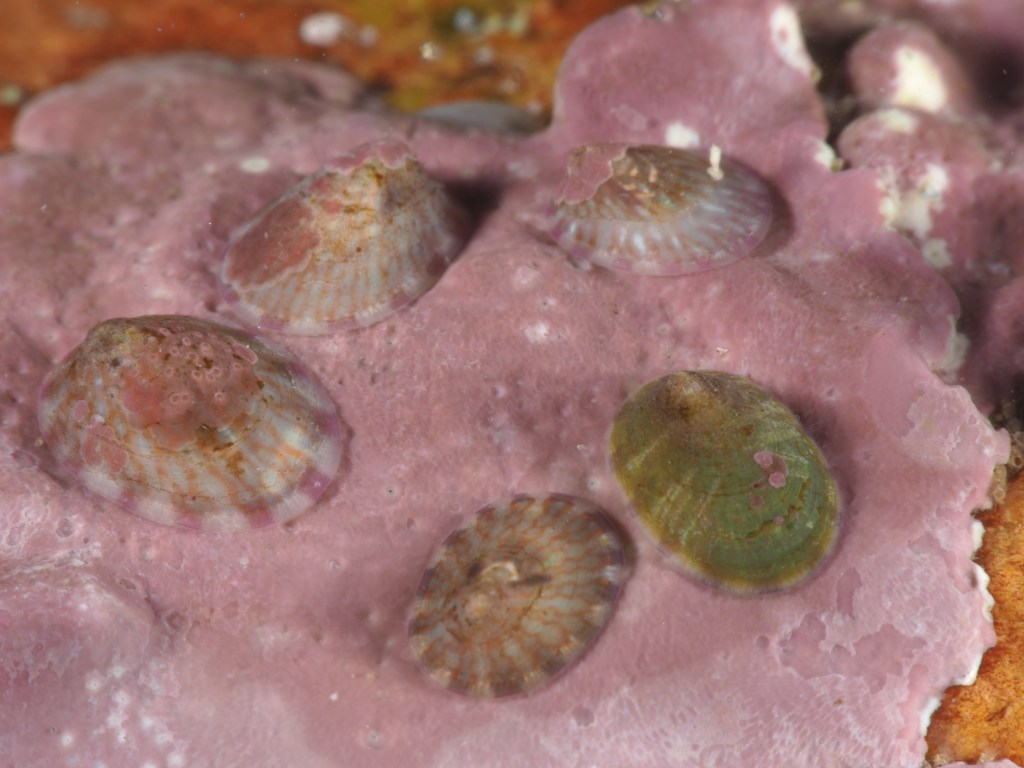 I realised I had not posted (much) about this year’s rockpool snorkels so I am taking the opportunity to post a ‘picdump’ with a whole array of tiny species. These photos were taken with a macrolens, and for most a wetlens was used for even greater magnification. Above the Tortoiseshell Limpet Tectura virginea, a tiny species living on calcified red seaweed. I have added species names to the photos below.