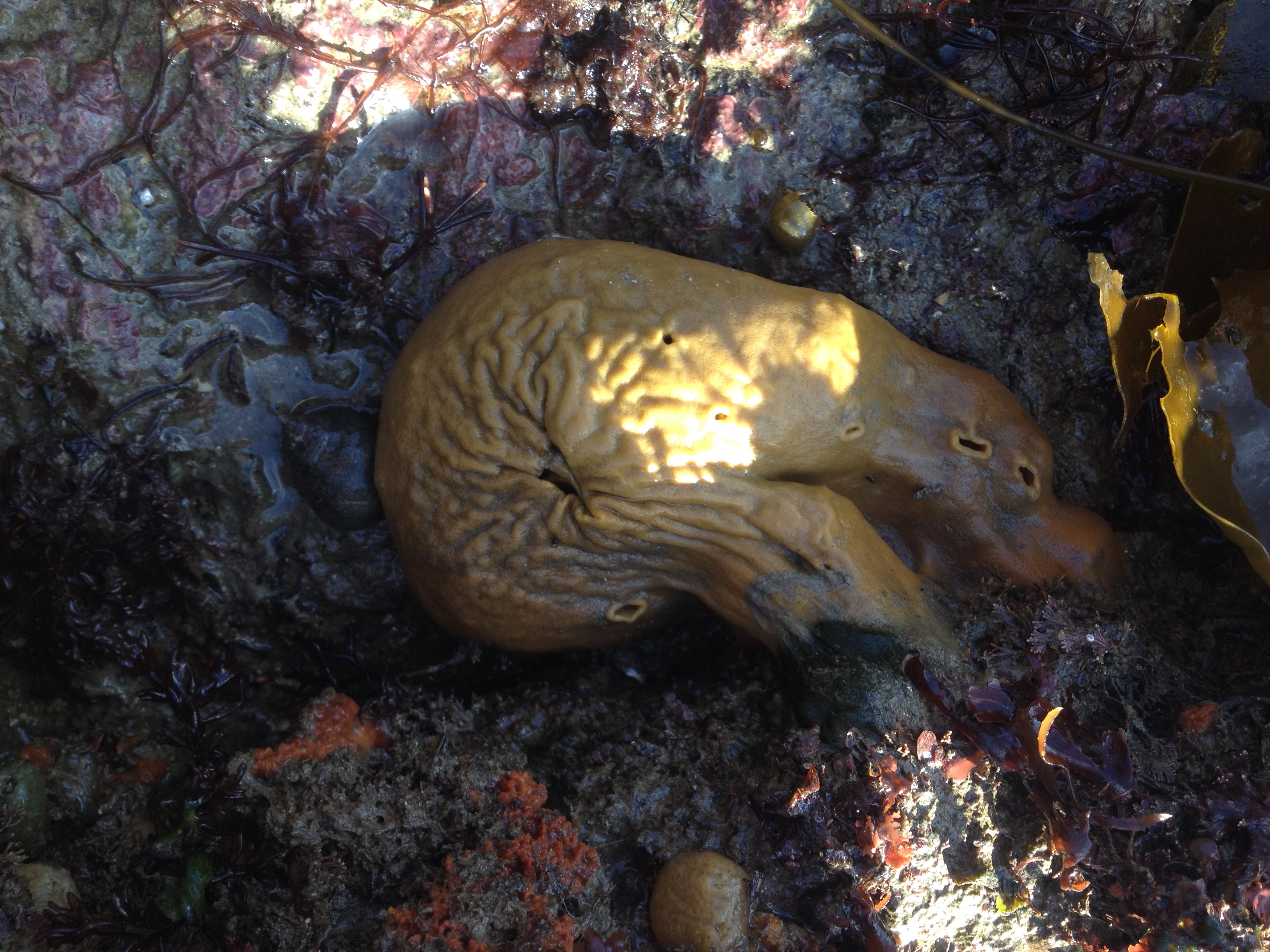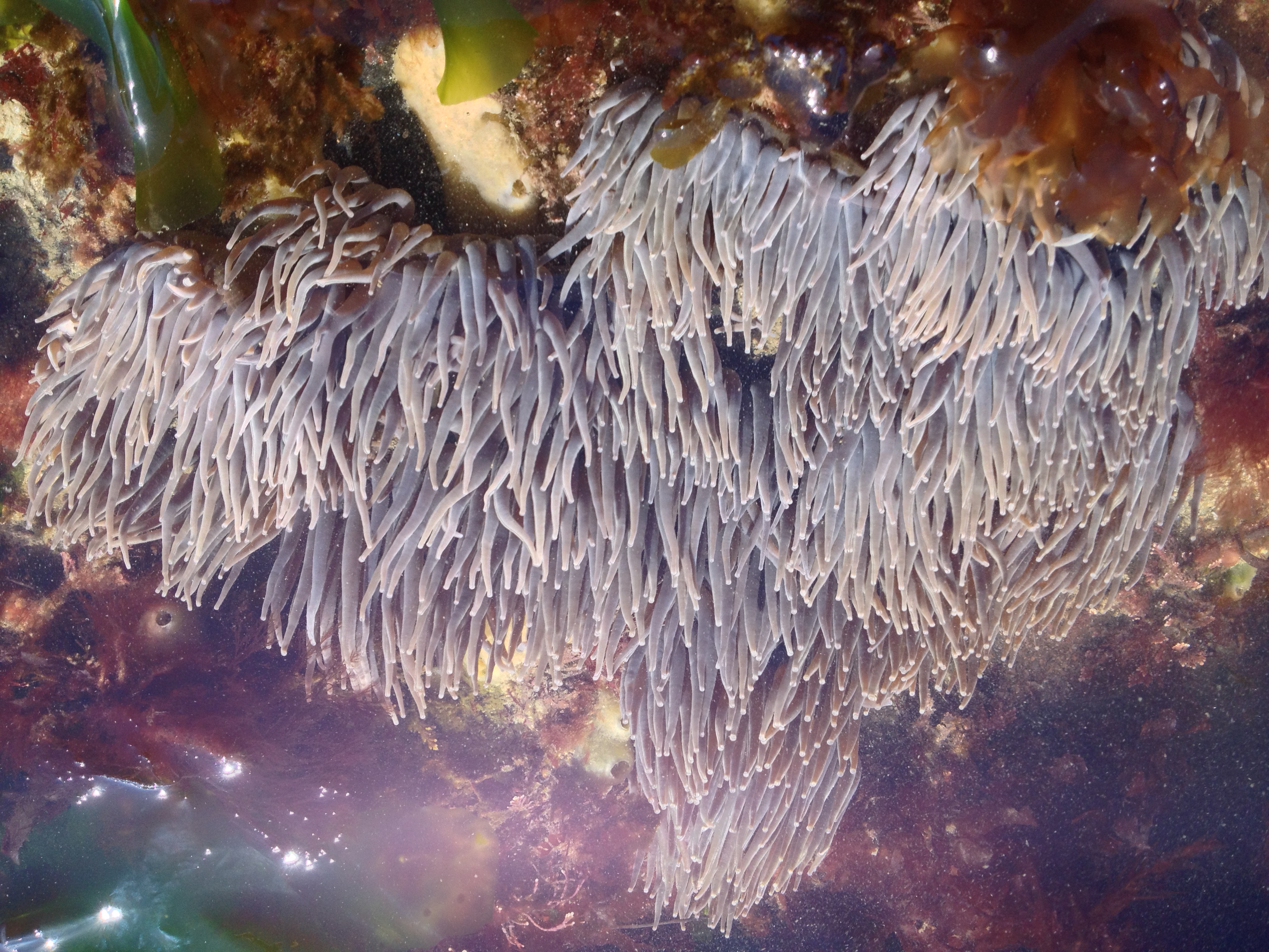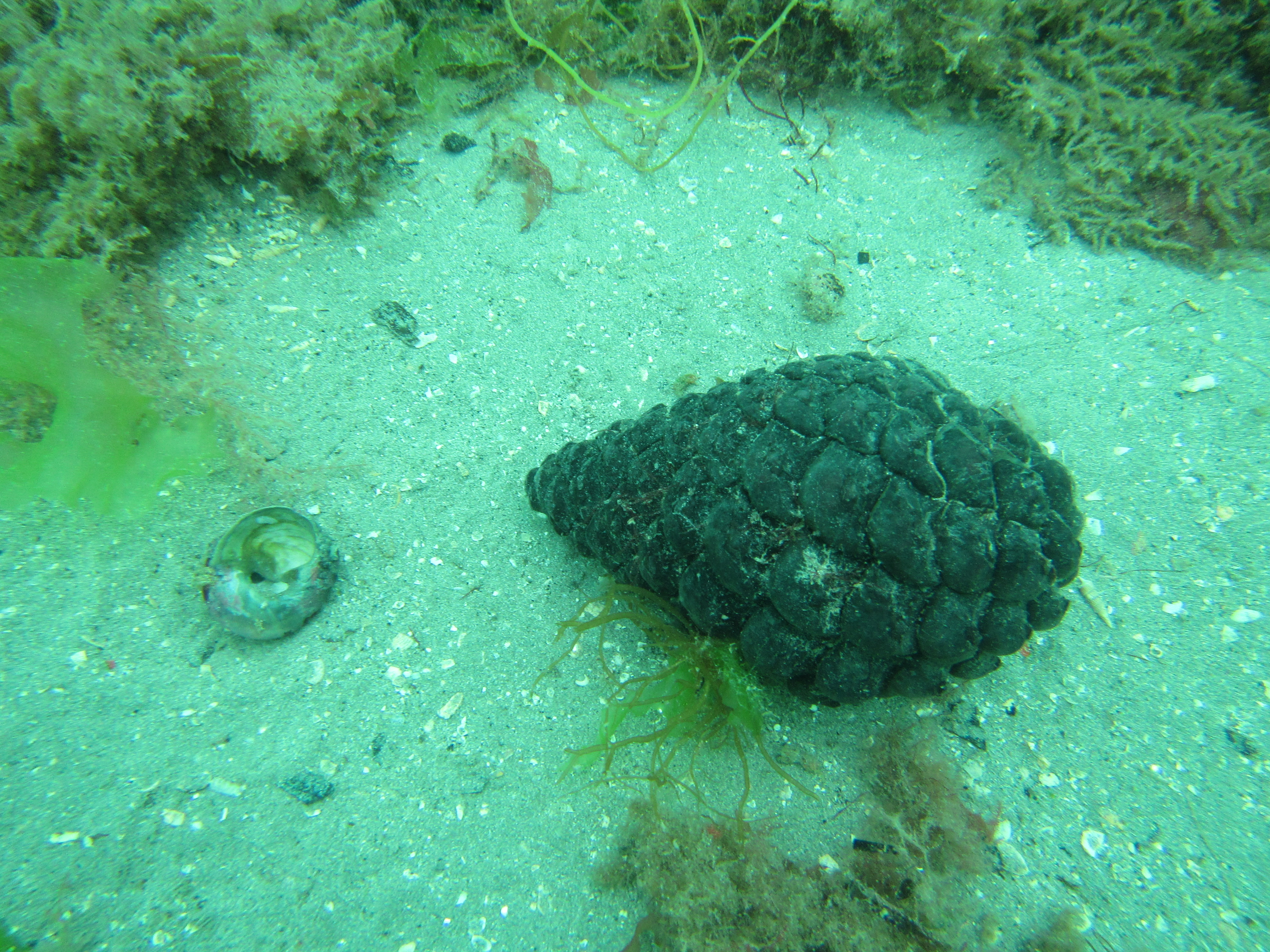 This site is sheltered and silty and some species are more characteristic for this habitat and much less common in Castle Beach in Falmouth. Examples include the Keyhole limpet Diodora graeca, the Elephant hide sponge Pachymatisma johnstonia and the Yellow-plumed seaslug Berthella plumula: