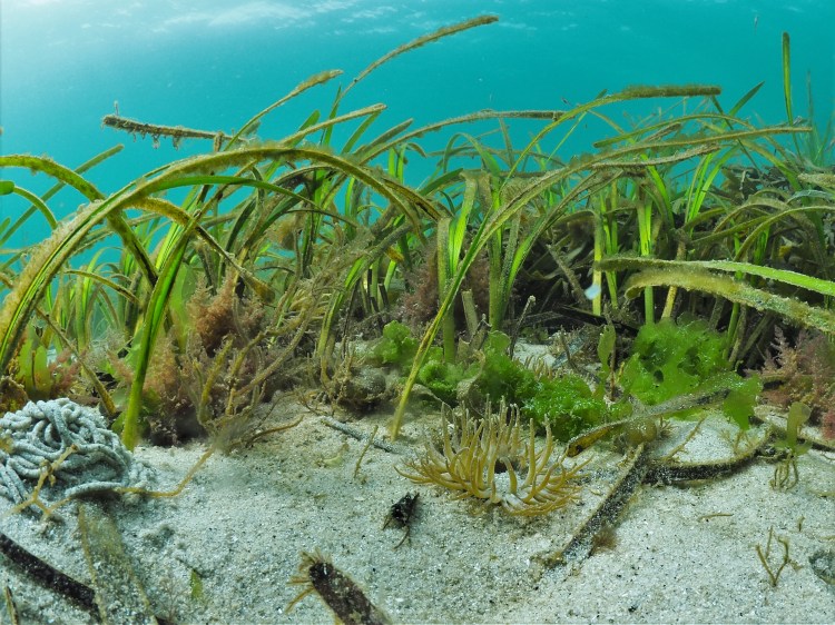 The tall Brown seaweeds, Himanthalia, Sargassum and Gongolaria, were interspersed with seagrass beds, with Ulva, Saccharina and some Asparagopsis inbetween.