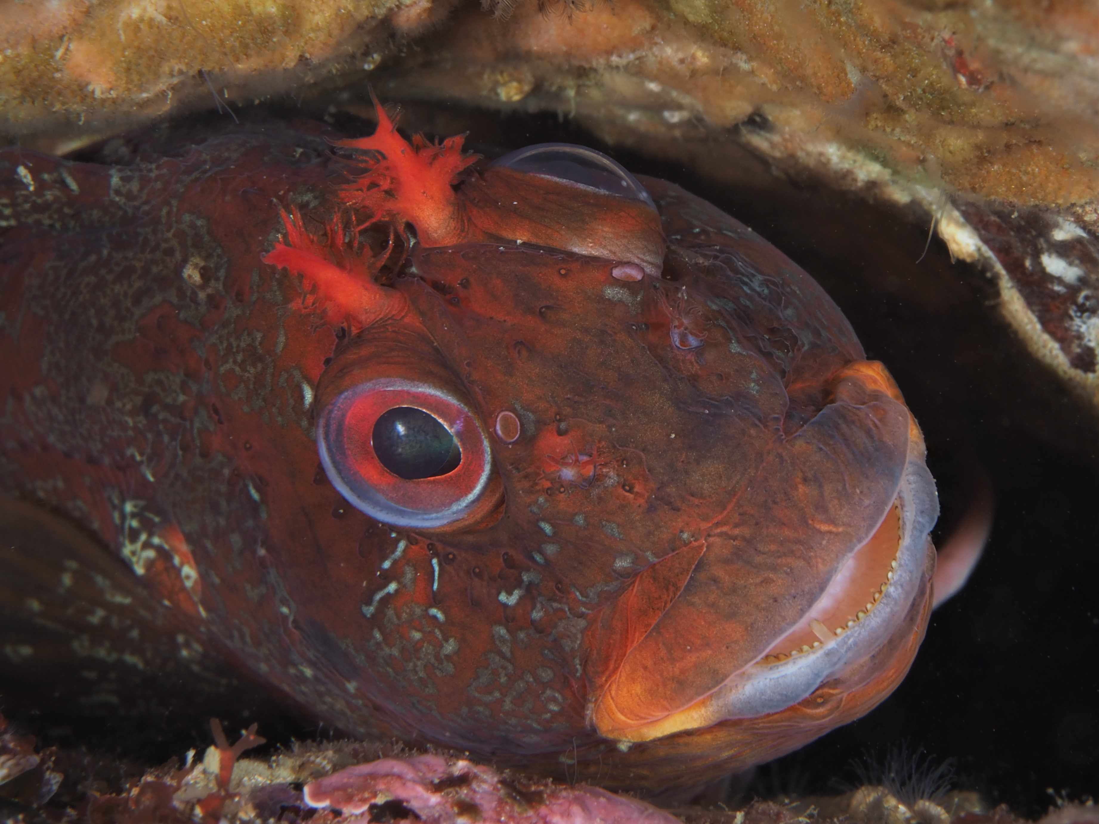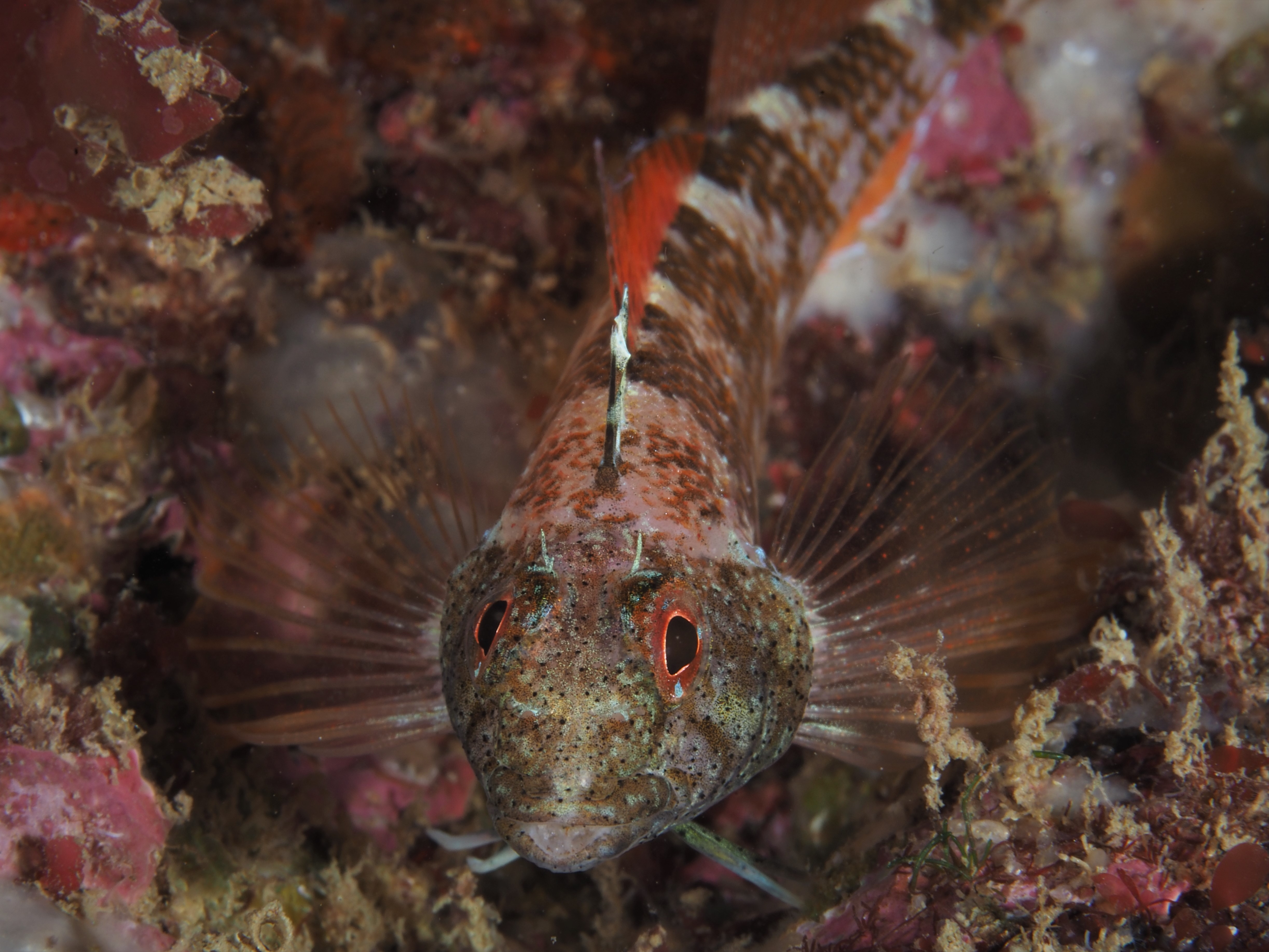 Second, Tompot Blennies (Parablennius gattorugine) are extremely inquisitive, often coming very close to check out what is going on in front of their domain: