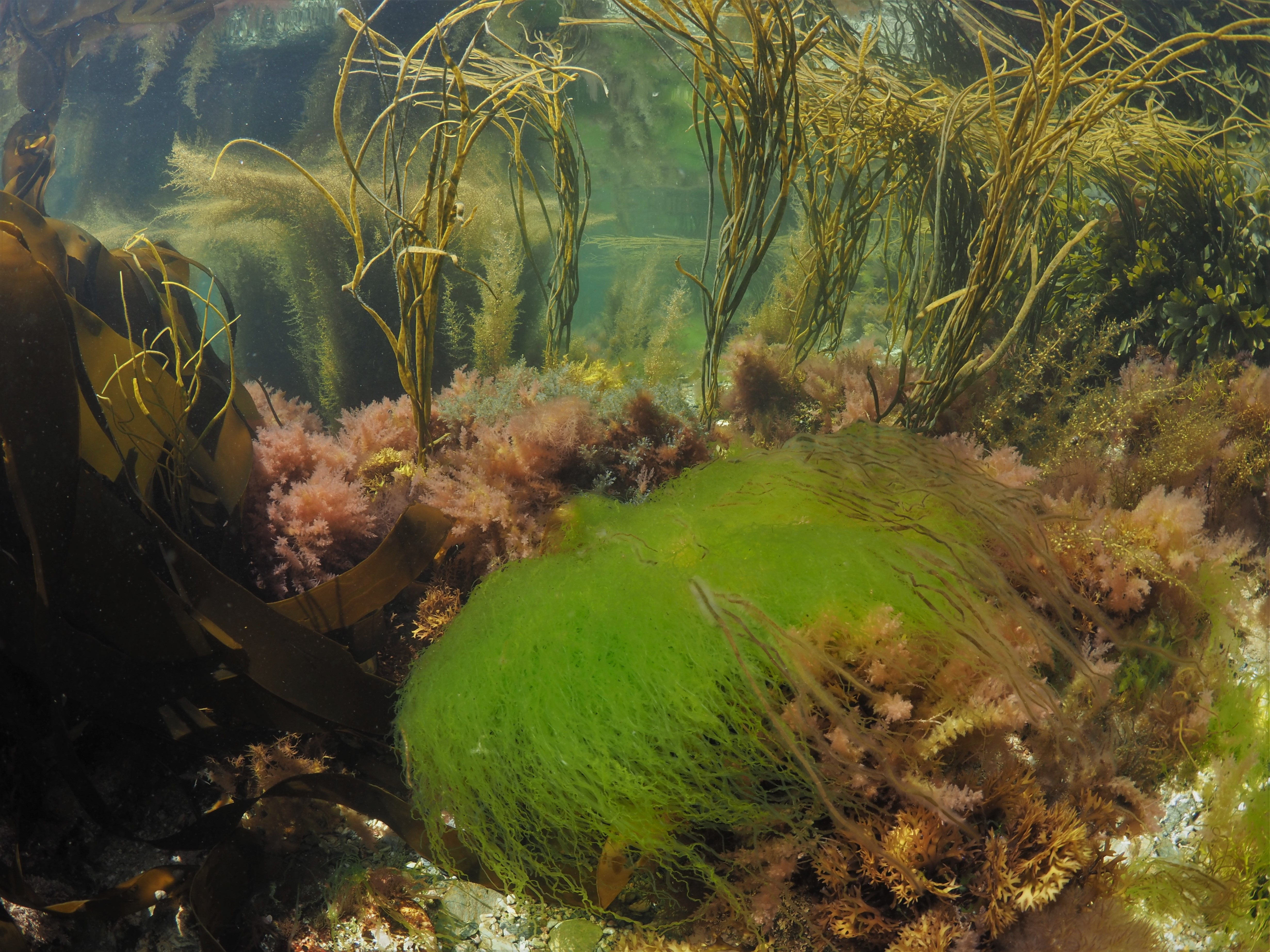 As the fish proved a bit too fast, and the over-unders a bit too difficult, I tried to take some shots of seaweeds instead. Although I mainly knew it from more sheltered locations, there was quite a bit of Mermaid’s tresses Chorda filum on this exposed coast. There was a lot of discoid forkweek Polyides rotundus on the sand but also on the rocks, and often covered in Falkenbergia. Other species that were abundant were Hairy sandweed Cladostephus spongiosus and Desmarestia ligulata. Hope to return soon!