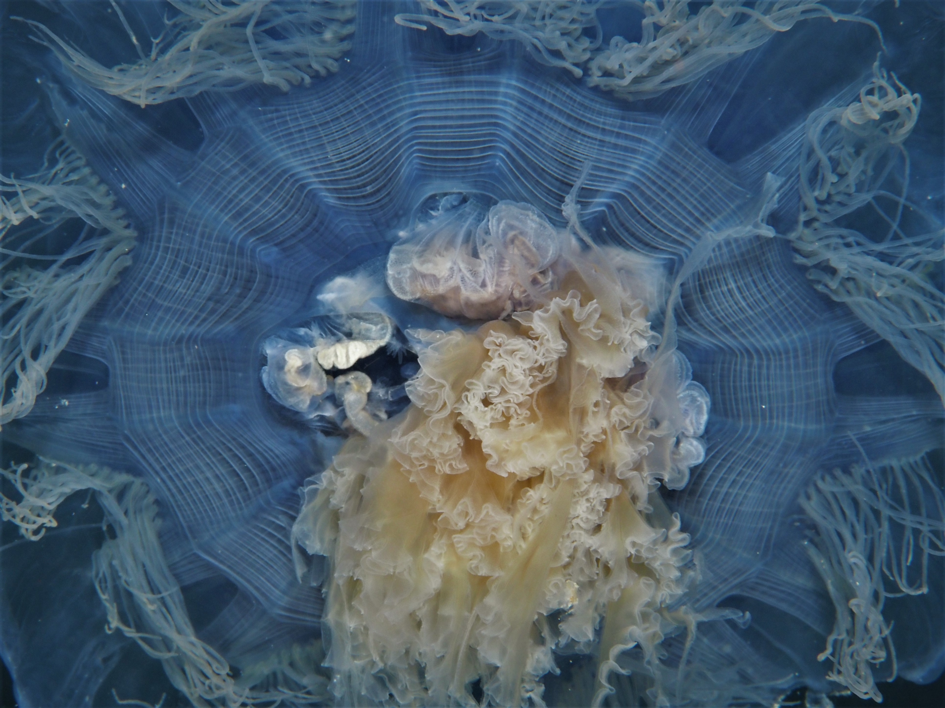 On the same snorkel I also pointed my macrolens at blue jellyfish Cyanea lamarckii; it was fun to capture more detail, although ideally I’d like to capture detail AND the whole animal…. Maybe more luck with a new (or rather secondhand) wide angle lens this year – I cannot wait for the weather to improve and to go back into the water! More posts to follow soon I hope.