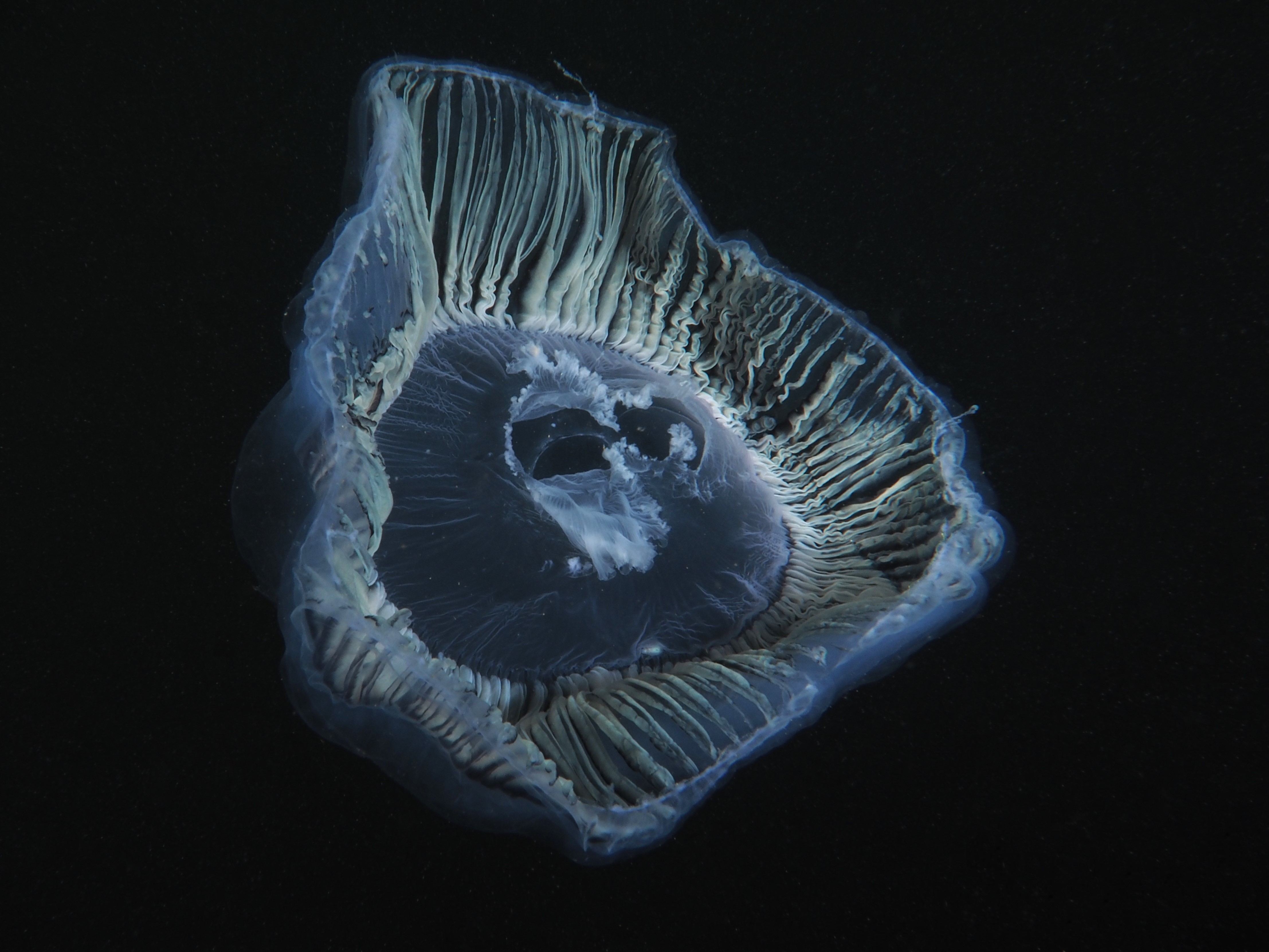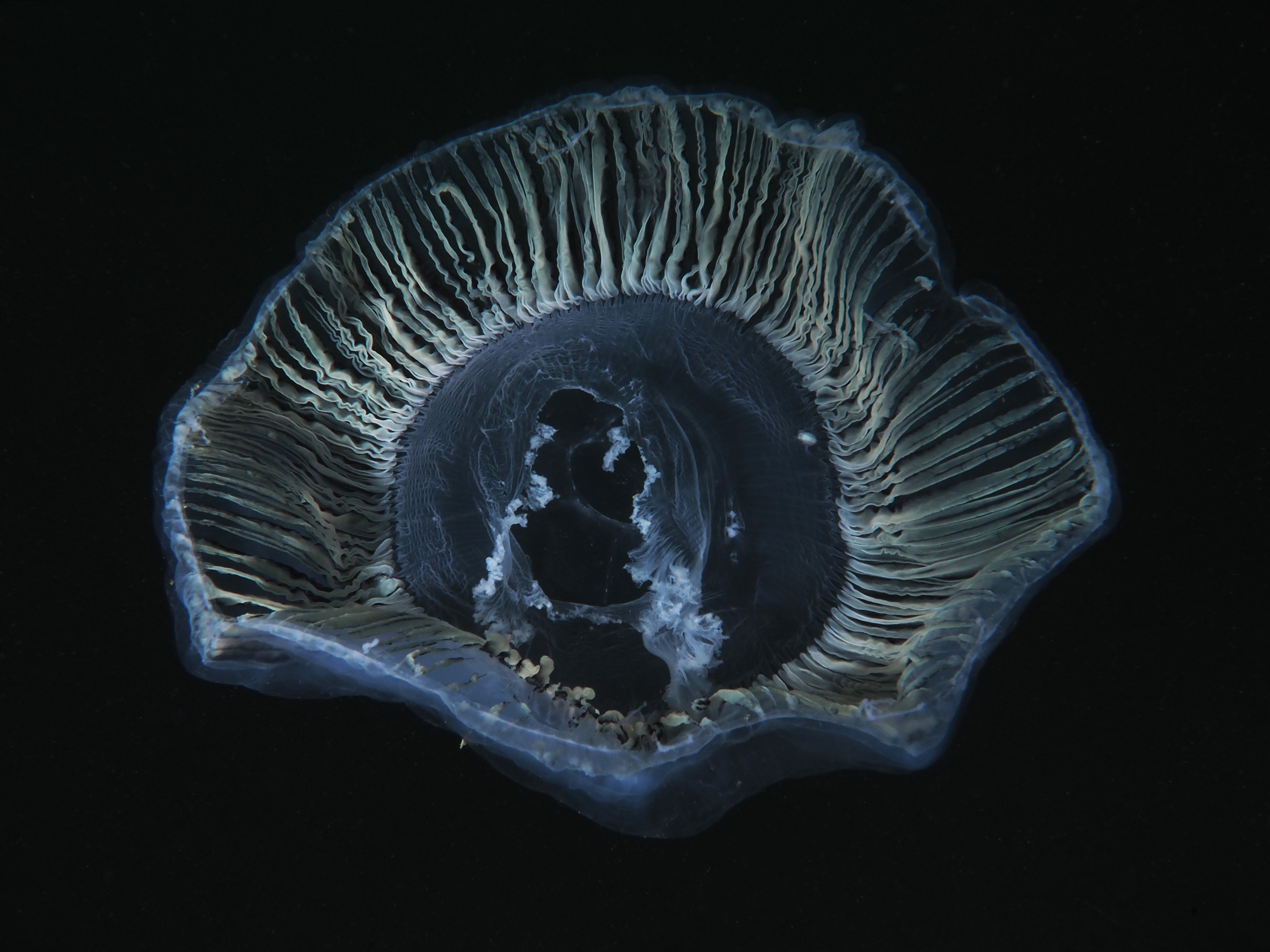 Earlier last year I also took some macro shots of another Aequorea species (perhaps A. victoria but these animals are not easy to identify in the field), below two shots showing the mouth (‘manubrium’).