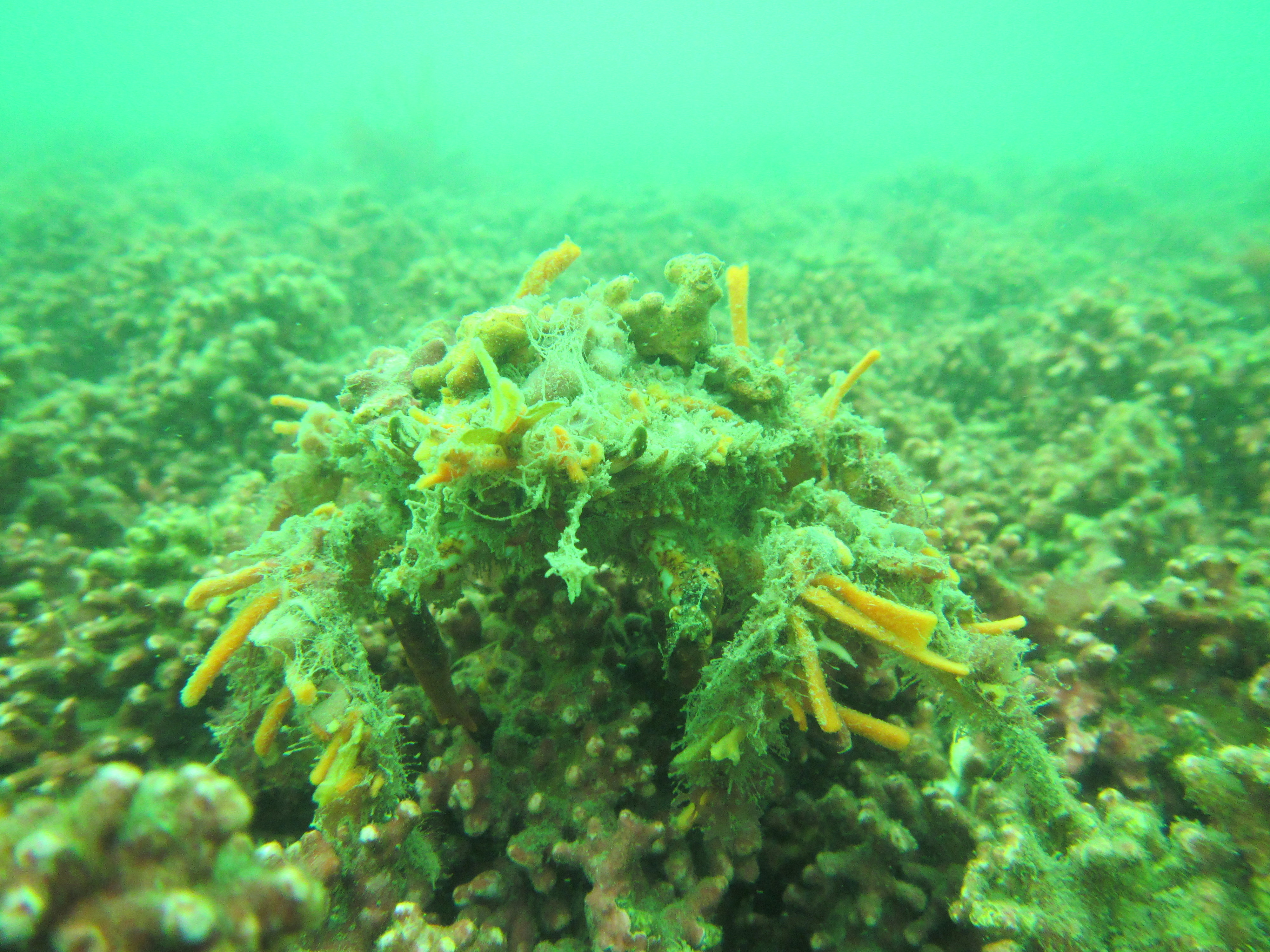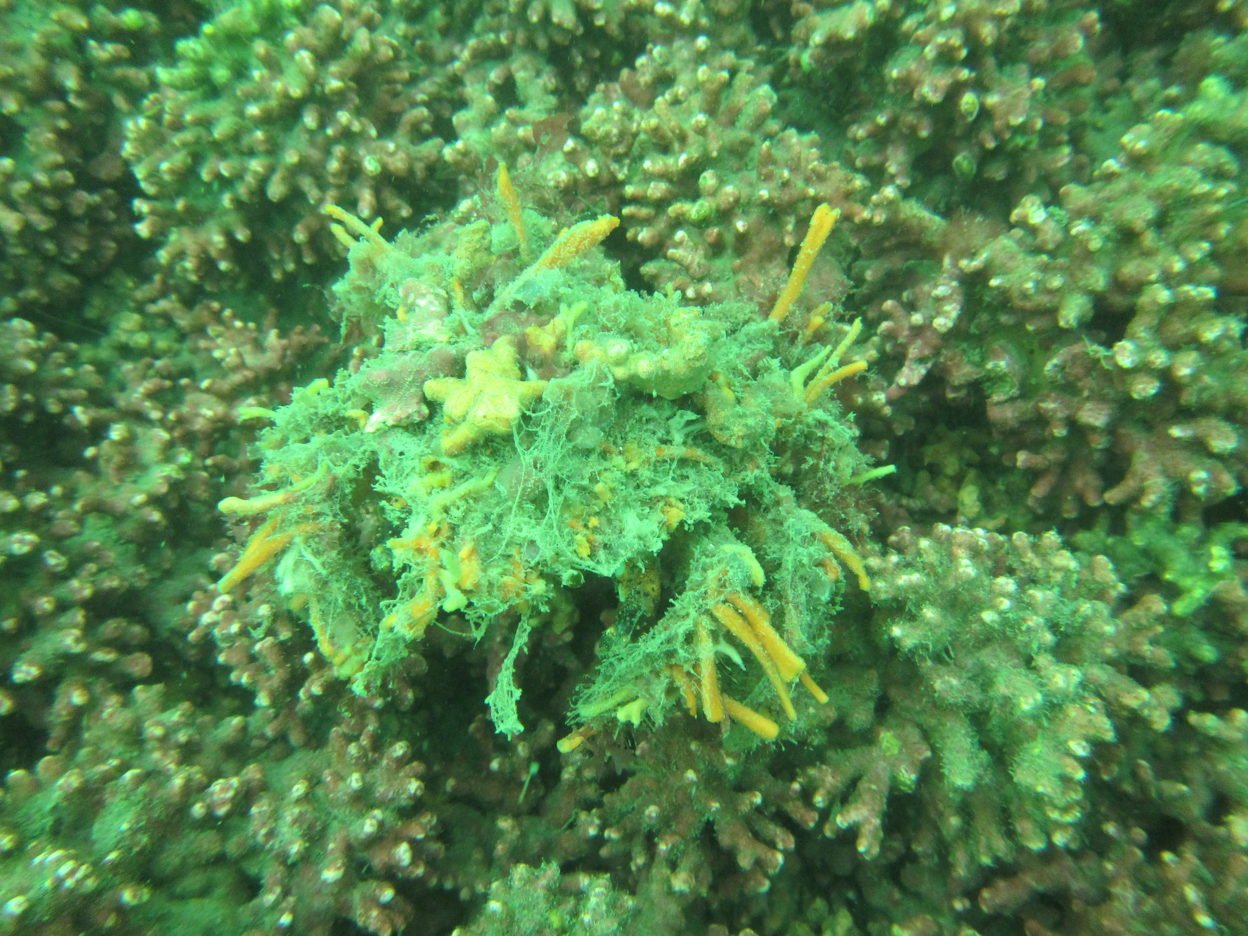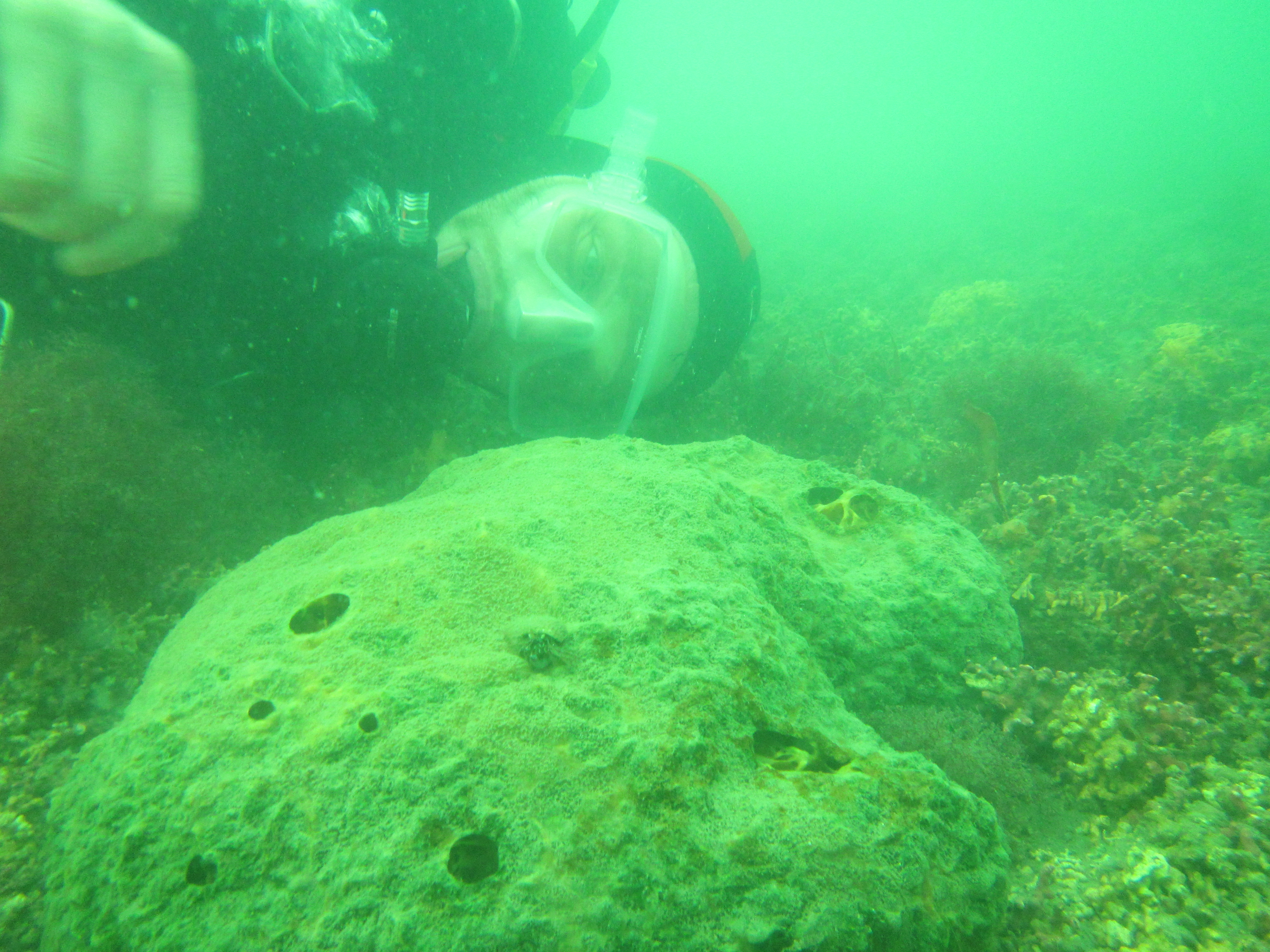 Swimming crabs were common and probably mostly were the Harbour crab Liocarcinus depurator. The first picture was the only one with flash and shows the Maerl colours a bit better. The second photo shows a Velvet swimming crab Necora puber under a snakelocks anemone sitting on top of a bottle. This species can be very commonly seen rockpooling. Lastly an empty shell of the largest European sting winkle Ocenebra erinaceus I have seen so far and probably the largest sponge I have seen so far too (with a human head for scale).