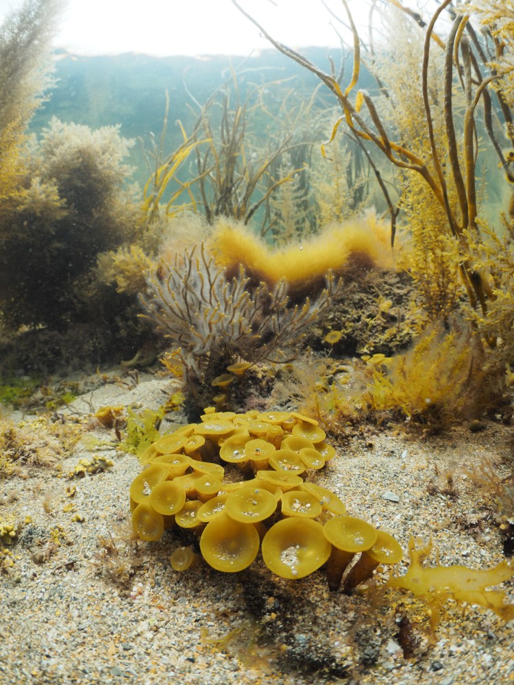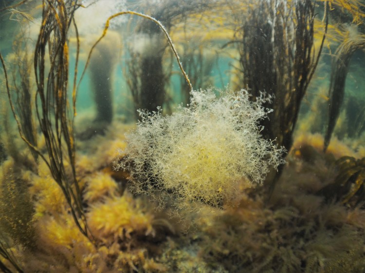 This seaweed is much more prone to epiphytic groth than the surrounding Laminaria kelp. This must be the reason why it is always covered with grazing Grey topshells Steromphala cineraria. As with other kelps, it is home to the Blue-rayed limpet Patella pelucida. As the conditions were bad, I was forced to limit myself to a large, abundant and non-moving subject, but it was actually quite nice to work within such constraints. One of my favourite seaweeds and when conditions are better (and when I am by myself, with more time and a weight belt so I can dive down instead of holding the camera down and shooting ‘blind’), I definitely want to try again!