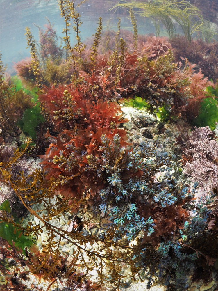 A while ago I played around with taking pics of the underside of a buoy, which was fun, and so i wanted to practice this some more. My mistake the first time (see here) was to use a fast shutterspeed (the buoy was bobbing about after all) which made the water look unnaturally dark. I tried again this weekend and it went a bit better, although I already know I can improve things. This time I thought it would be nice to put some names to the amazing fouling biodiversity (I did this before for some seaweed images, see here). Crustaceans (tube-dwelling Jassa), Sponges, Bryozoans, Seaweeds but especially a lot of Tunicates (seasquirts; both solitary and colonial species). David Fenwick (of AphotoMarine fame) had a quick look to help with some IDs; there is a more there but this was not meant to be exhaustive. I have underlined species that are invasive. Anyway, I am sure I will post more of these types of images: the buoys are always there and these organisms do not swim off when you try to take a photo!