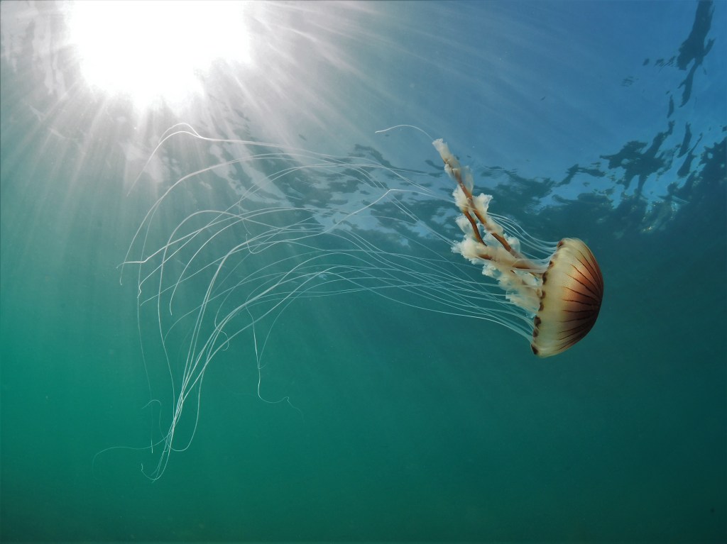 I had a couple of good snorkels at the end of summer in the seagrass beds off my local beach in Flushing. The water at the end of summer is warm enough to go without wetsuit – I just had a weightbelt to let me sink down on the sand at low tide, no fins needed. I managed to do what I normally find very difficult: spot nudibranchs! Mainly one of the more common species, Polycera quadrilineata, but that was fine by me, as they are very beautiful, especially the black colour morph pictured above. I spotted one other species, the egg-eating Favorinus branchialis (with its own eggs also visible). Not great photos, but in my defense they are very small!