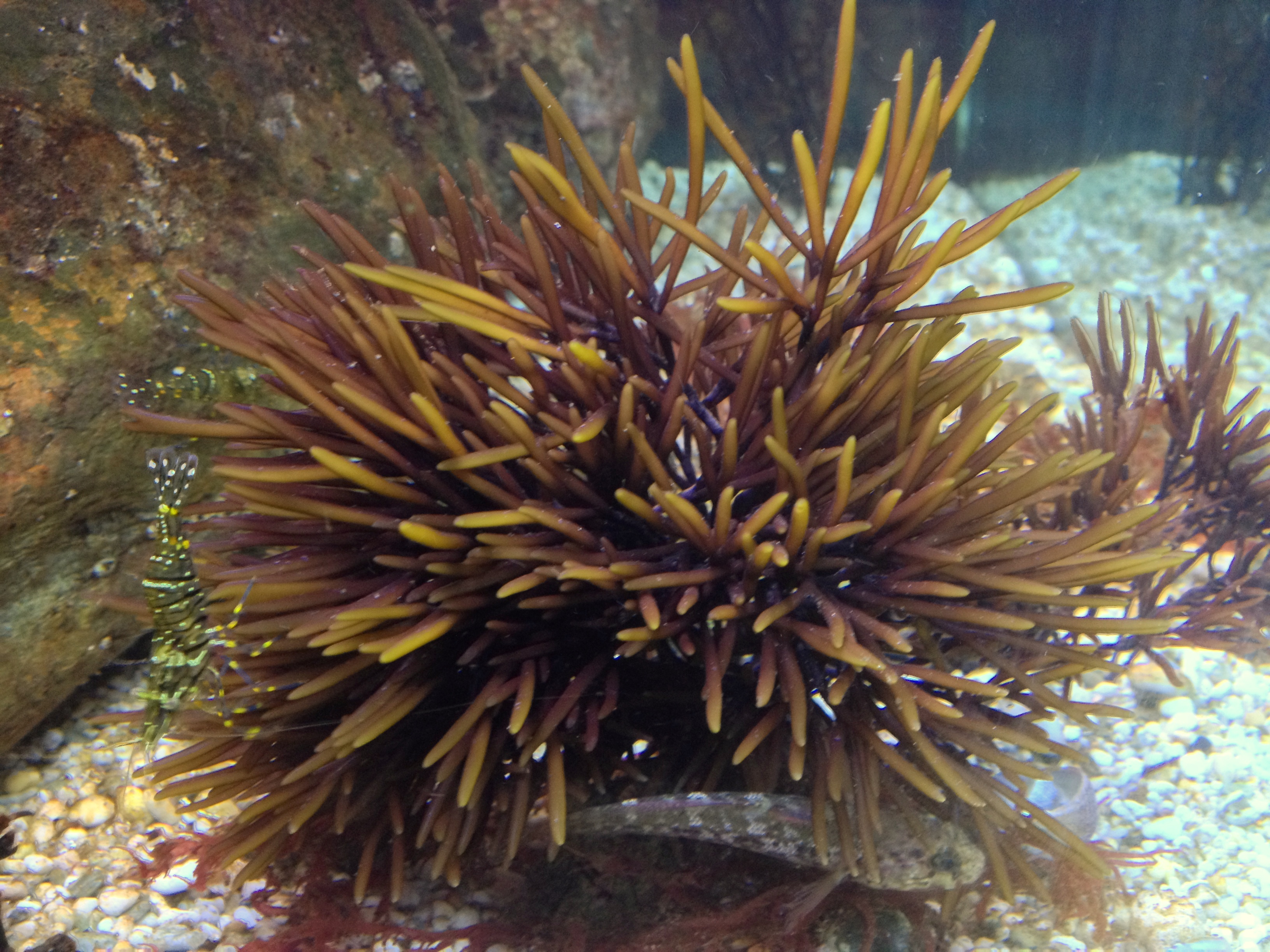 I am not sure whether replacing one of the actinic lamps with the daylight lamp was such a great idea, the tank looks too yellowish now, especially with the Maerl sand…However, I will stick with it and see whether it helps future attempts to successfully keep Bushy rainbow wrack Cystoseira tamariscifolia (i.e. to retain it’s iridescence). If not, I’ll go back to the original lighting. I will not do too much with the aquarium in the near future as I want to get rid of the algae first. There are not many critters in the tank, which should help (I have only introduced a nice big Snakelocks anemone Anemonia viridis recently). I will do some more water changes and order a new pump. Only then will I slowly start experimenting with seaweeds again.