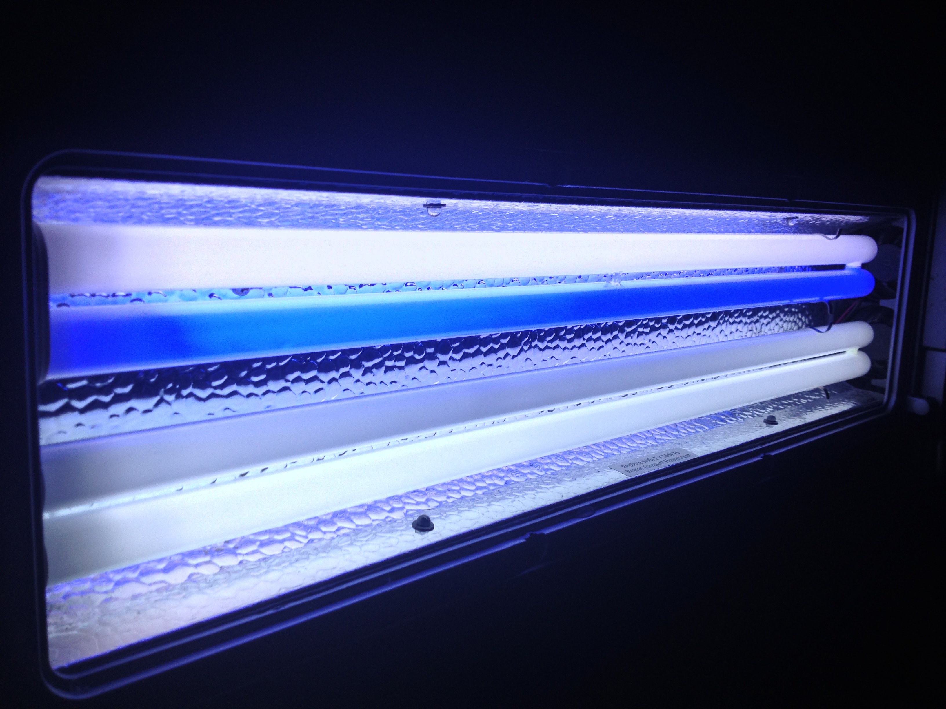 I am still unsure about the chiller, but with the weather getting warmer it might be more than just a luxury to have one. Apart from the price, it standing on the floor next to the aquarium with tubes sticking out is what I don’t like about the idea though. It will also not be silent, but perhaps I could get away with disabling the noisy hood fans, resulting in an overall quieter aquarium. The stripped-down tank (note that the red encrusting algae/seaweeds at the top of the tank have died (turned white) as they were exposed for a couple of hours when changing water):