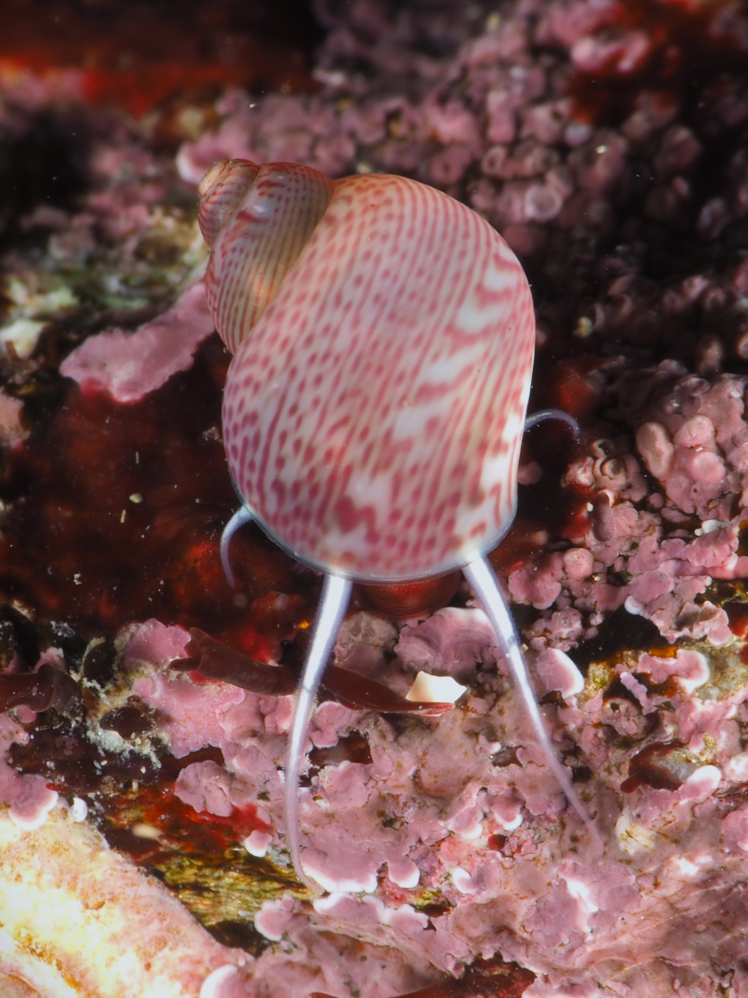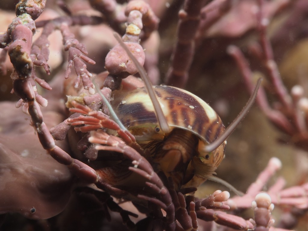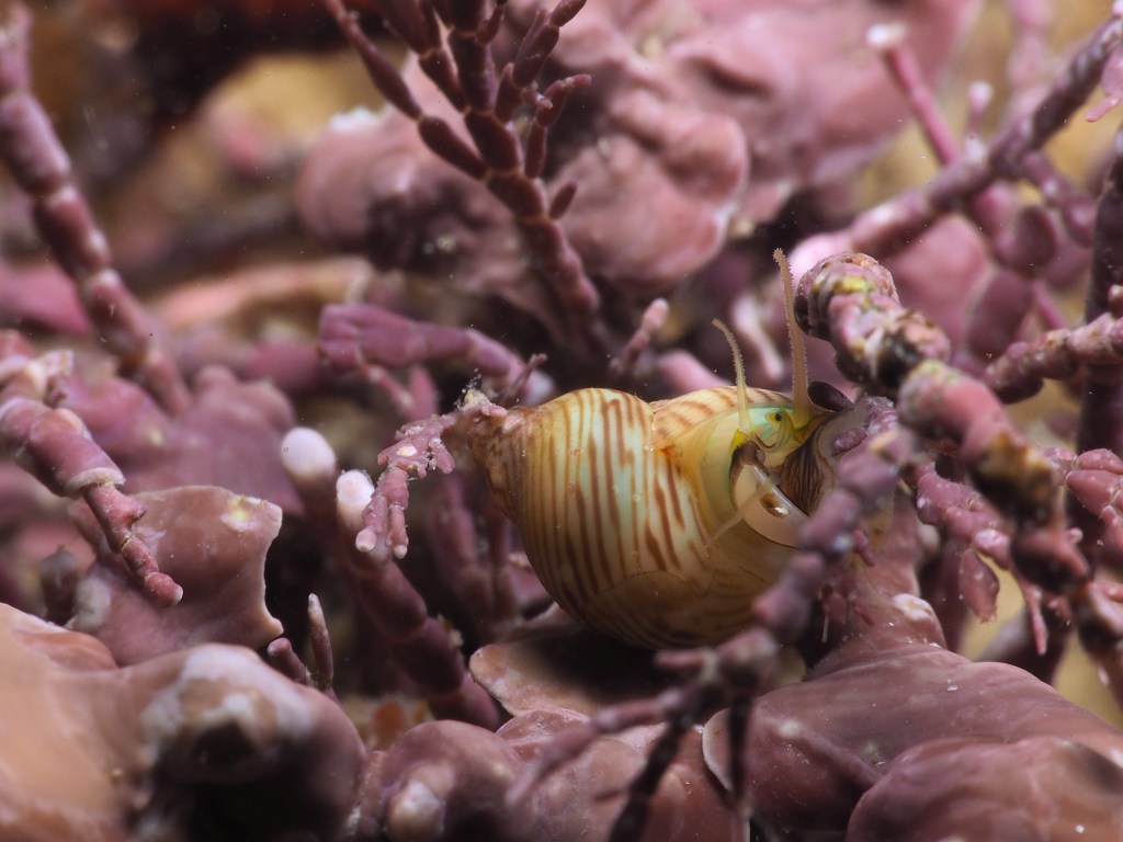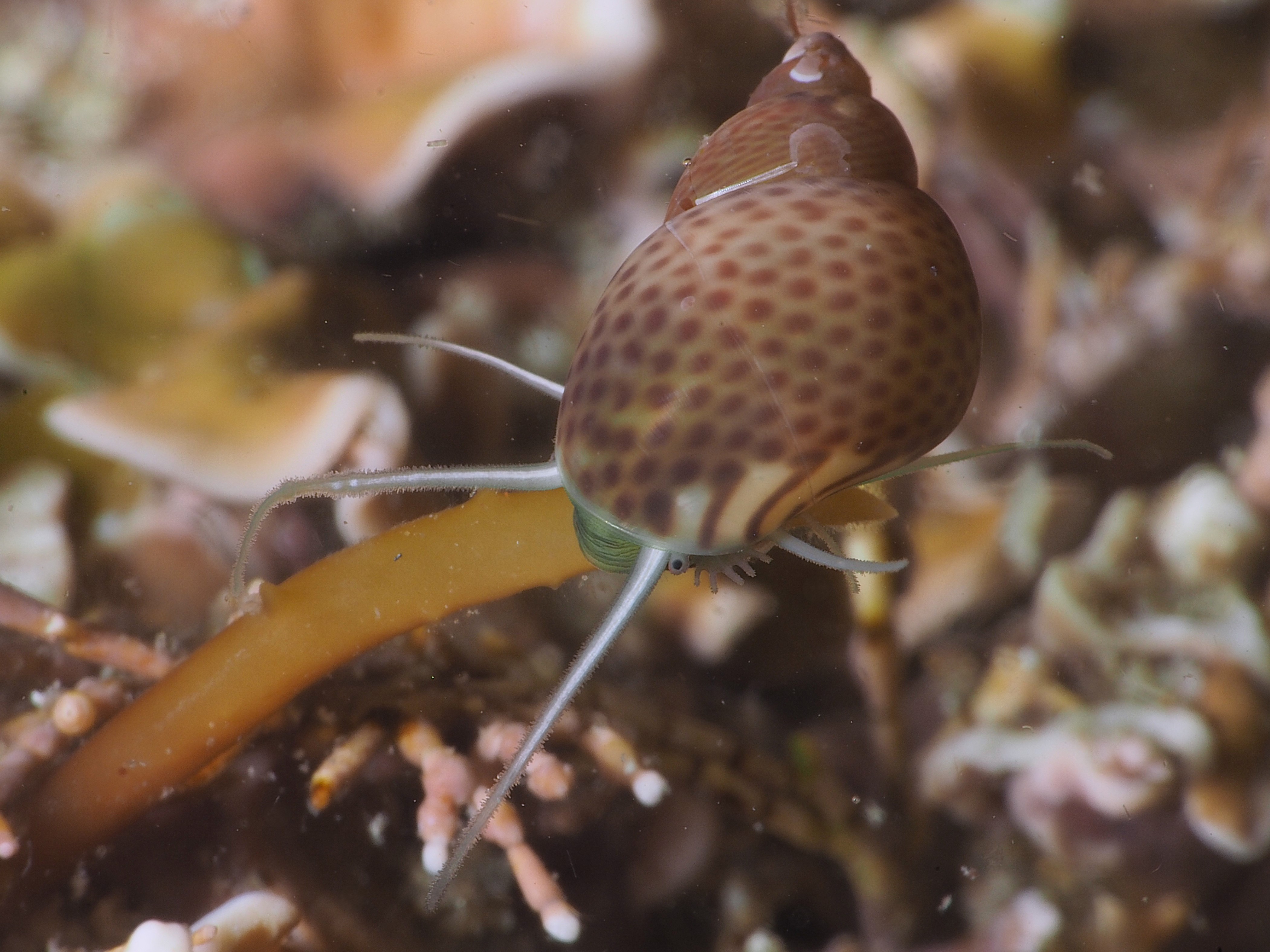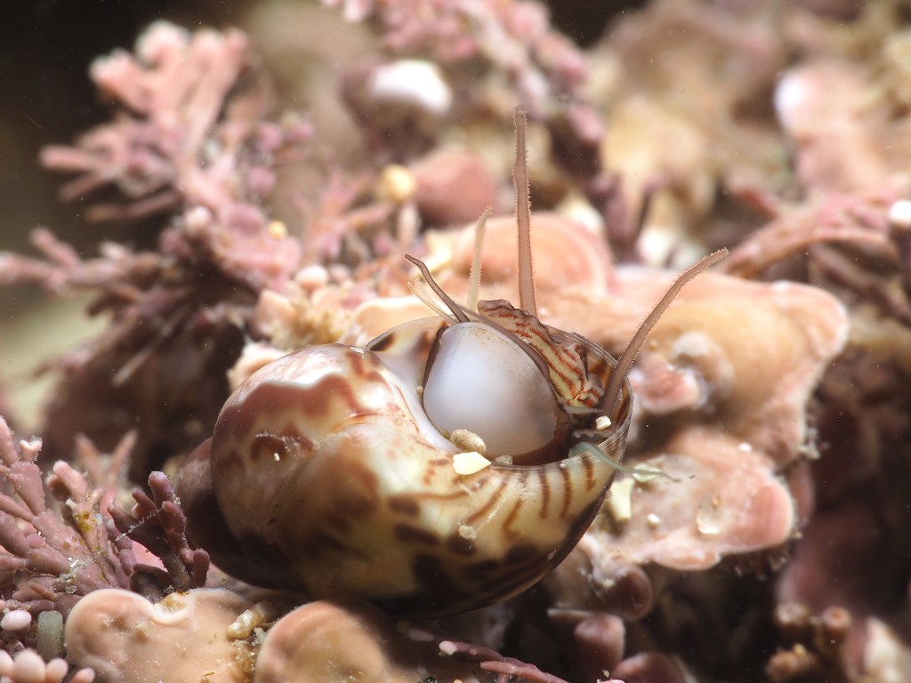 The Pheasant Shell is one of my favourite little critters in the rockpools in Falmouth. It is a bit weird to refer to these organisms as ‘shells’ actually, as they are living things and the nonliving shell is ofcourse only a part of them. The confusion extends to its scientific name: this species was previously known as Tricolia pullus, but has recently been split into a Southern European T. pullus species and a Northern European T. picta species. Perhaps the dust needs to still settle on that one.