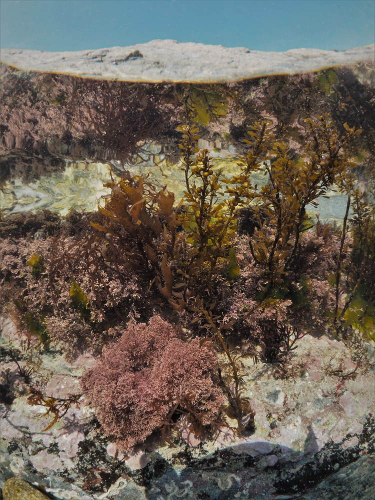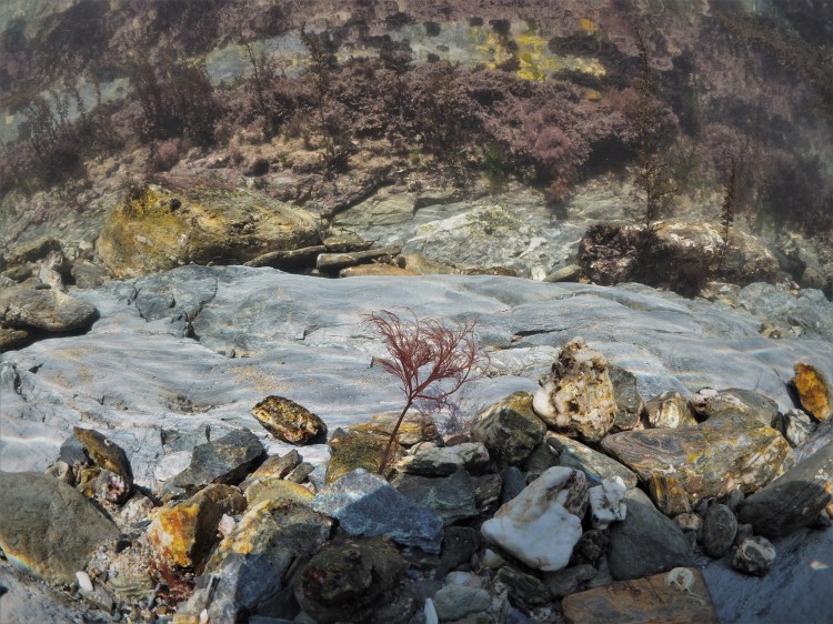 Just a very quick post: went for a snorkel today as the sun was shining; there was some wind so the viz was not the best. Snapped a lot of ‘6’s but I liked the green Ulva lactuca (sea lettuce) and the red Sphaerococcus coronopifolius (berry wart cress). Both are plants (‘Plantae’) and not related to the brown kelp in the background (which is more closely related to potato blight!).