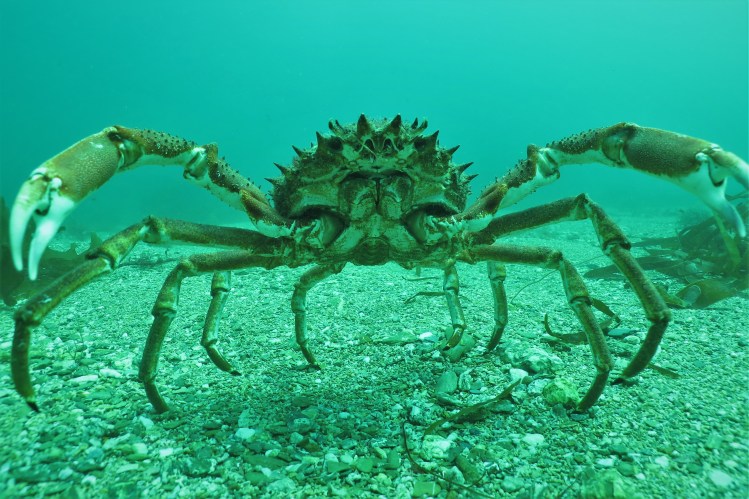 Finally, time for a (solo)dive last Saturday, at probably the most accessible local site: Silver Steps in Falmouth (you can just make out the steps in the photo above). The sun and high tide had attracted quite a lot of other divers too, including University of Exeter and Falmouth University students learning the ropes. I was very keen to get in the water and take photos but my approach is probably not the best: I just shoot whatever happens to be in front of me. Better results could be obtained to specifically look for macro subjects, to stay in the water column and search for jellies, befriend the Ballan wrasse or stay put in front of a Leopard-spotted goby hide-out (or check out seaweeds of course). I’ll do one of these things next time, for now, some random shots. I spotted several Spider crabs; these are always shy and try to quickly retreat, except for one. This big crab came after me as soon as we spotted each other. I should have tried more shots, as unfortunately he did not fit the frame. You can see in the short movie why I didn’t!
