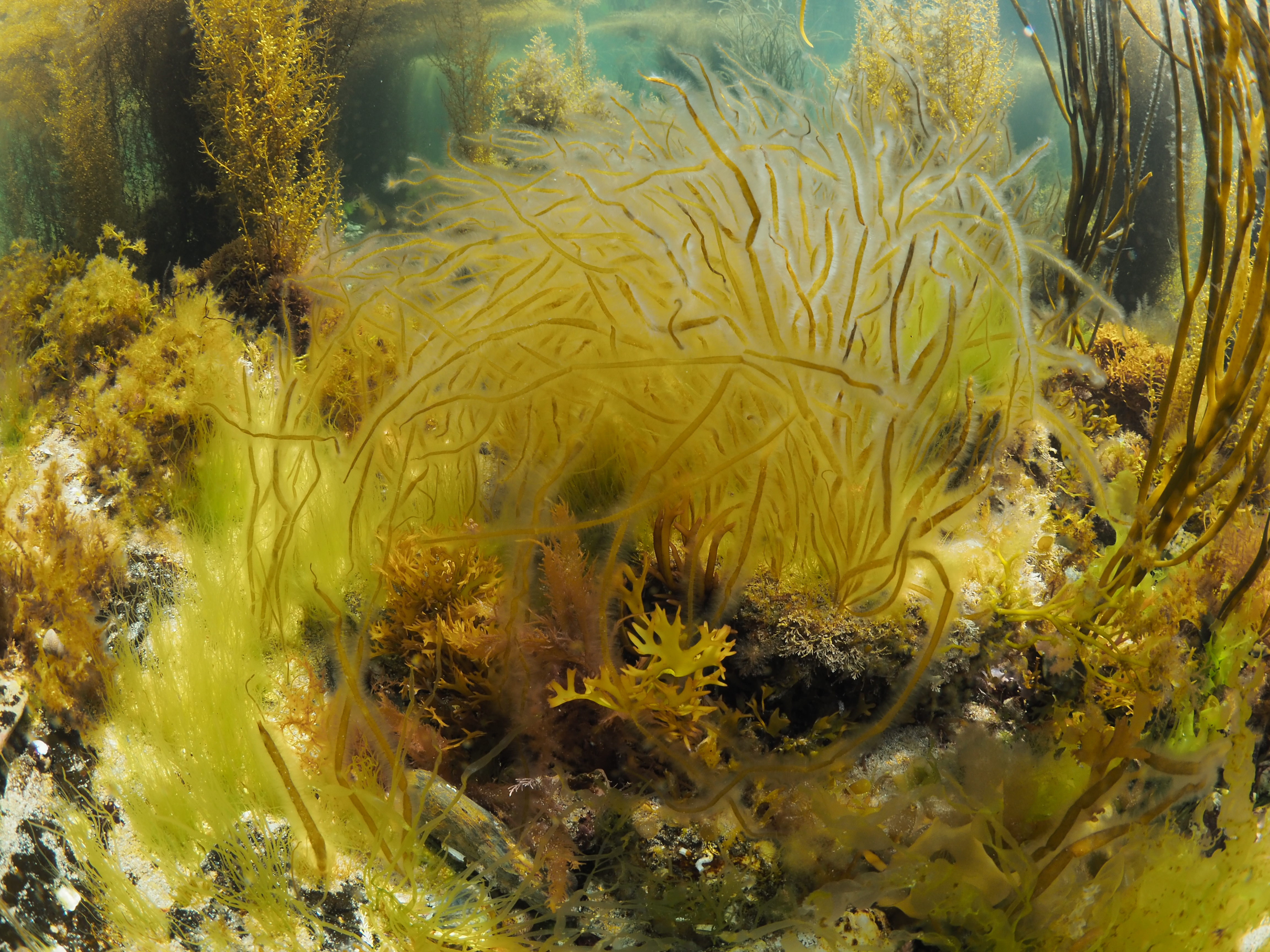 OLYMPUS DIGITAL CAMERA Published May 22, 2020 at 4608 × 3456 in Seaweed Gallery ← Previous Thin Sausage Weed Asperococcus fistulosus
