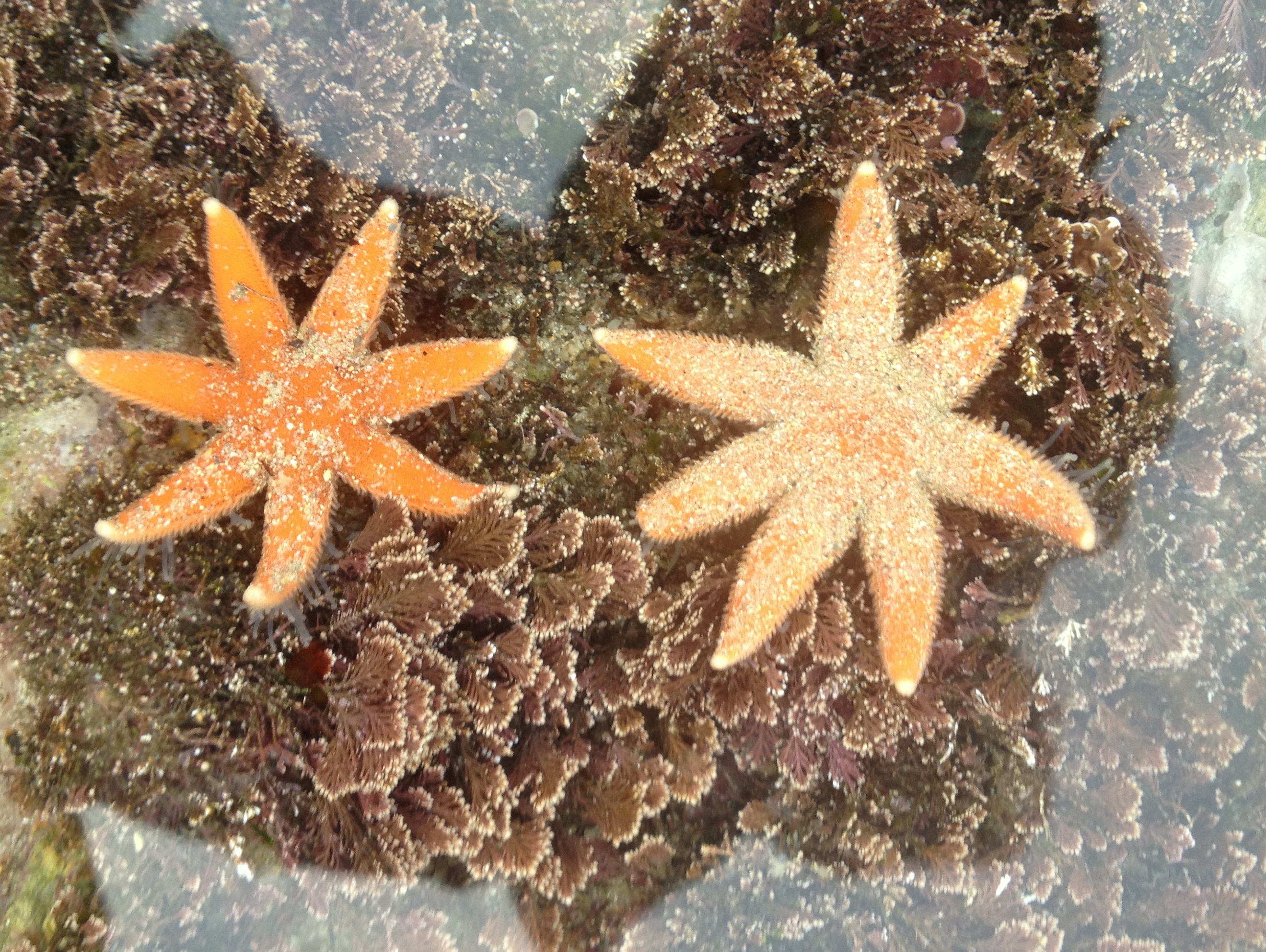Low tides over the weekend, see the previous post for the trip on Saturday in Flushing. On Sunday the wind resulted in the water being swept up quite high on the shore unfortunately (the next very good tide I will make sure to check the wind a bit better, probably would have been a good idea to have gone to the north coast). Also the rain made swiping my iPhone very difficult and I was absolutely drenched. Luckily I had already taken a long lunch break on Friday when it was sunny! As I found a good number of species I will divide them up over two short posts instead of a very long one. In this post some species that have featured before, but that I now have taken better pictures of: a Shore clingfish (or Cornish sucker) Lepadogaster lepadogaster, a particularly purple Spiny starfish Marthasterias glacialis, a particularly orange Painted topshell Calliostoma zizyphinum as well as a close-up of the ‘normal’ colour variety, Blue-rayed limpets Helcion pellucidum, Seven-armed starfish Luidia ciliaris and a Bull huss (Nursehound shark) Scyliorhinus stellaris mermaids purse. Nice colours all around:IMG_6064