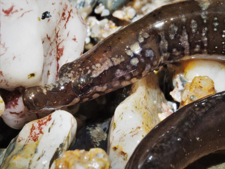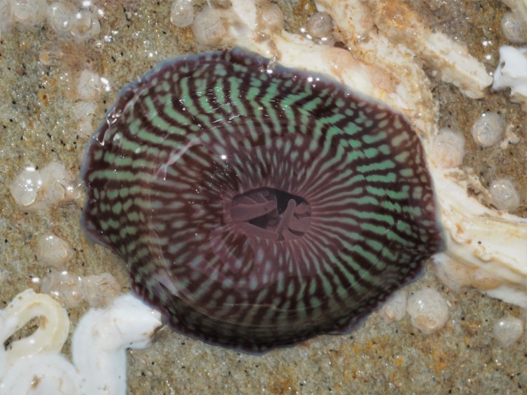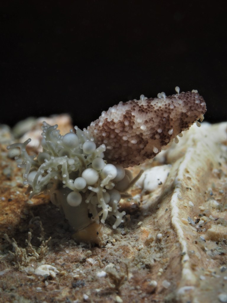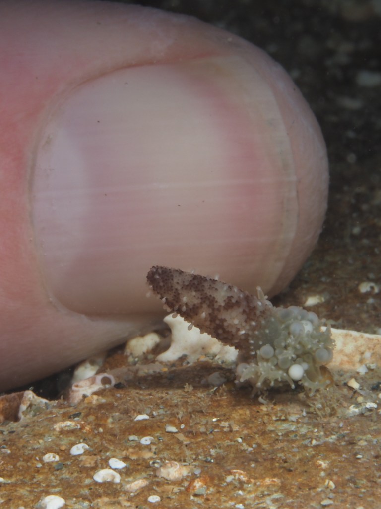This is a weird little hydroid and so only has a Latin name to go by: Candelabrum cocksii. It was first described by Cocks in his ‘Contributions to the fauna of Falmouth’ in the 1850s and it is quite common locally. I find them mostly as pictured here, but sometimes I see them with their foot extended, going from a centimetre to 8 centimetres or so in length. This allows them to rove over the rock surface in search of tiny (crustacean) prey. Their mouth is located at the end of the trunk which is covered in ‘capitate’ tentacles (see the pic below for anatomical labels). The white spheres are gonophores used for reproduction. It should be possible in summer when these hermaphrodites reproduce to see dedicated clasper tentacles holding the embryos, that would be cool (to me at least!). Btw, I remembered I posted about this species not even that long ago! See here and also see this link and this link from fellow enthusiasts across the pond who likewise have been fascinated by Candelabrum.