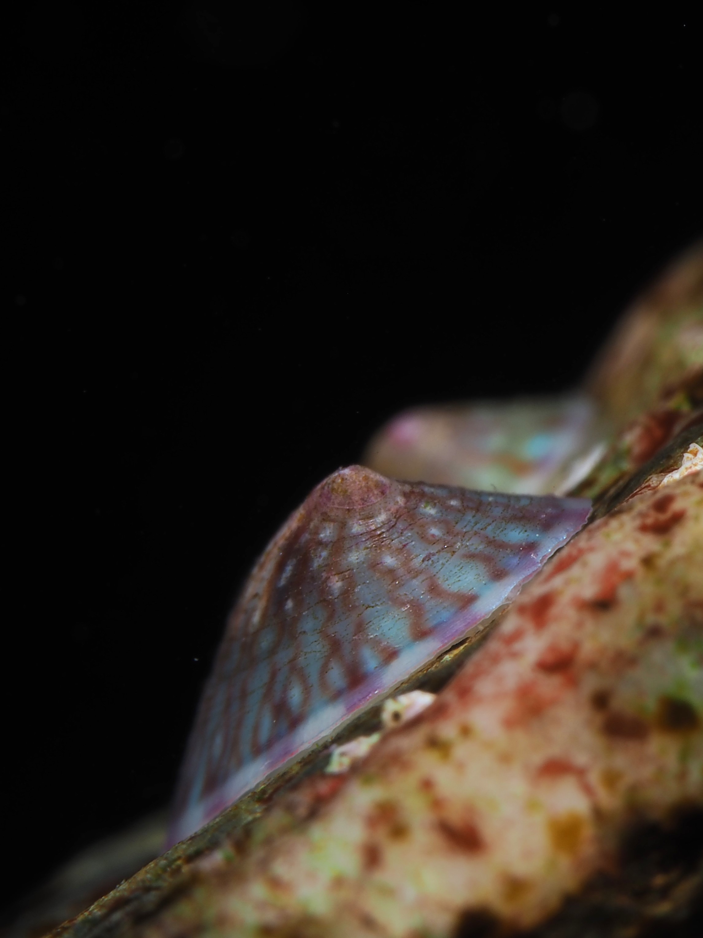 A few days later I returned with my probe lens, as i thought this would offer an original perspective. It was a tricky thing to do as this lens lets in very little light. The difference between foreground and background seems slightly off as well! These photos show that the mussels were crawling with the tubedwelling amphipod Jassa marmorata, a prominent fouling species. I planned to return to try again a few days later, but the chains had been replaced by ‘fresh’ ones, bad luck! I will go back to have a look at them as soon as the weather allows it.