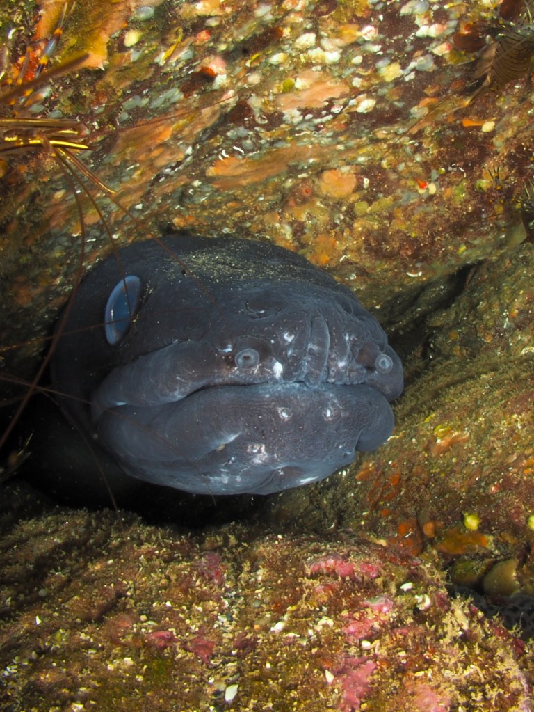 With the camera housing back, I have been in the water again lately, taking quite a few photos. I am lagging behind with posting quite a bit (this will allow me to post when I cannot get in the water later in the year) but should occasionally maintain the blog over summer, so here is! My local haunt Silver Steps provided during two dives with the macro lens. Above a Twin Fan Worm (Bispira volutacornis). These are quite shy (i.e. they retract into their parchment-like tube when their composite eyes detect a curious diver) but also are attached to cluttered rock walls. To blur this unappealing background, I used a very shallow depth of field (f 2.8); this also has the advantage of letting a lot of light in so ISO can be decreased to 100 – sorry non-photographers!). Below a collage of other ‘usual suspects’ (names under the photos) but ALSO I SPOTTED AN OCTOPUS! Crouched in a crevice and with only a macro lens I could not do it justice but it was still a very nice encounter.