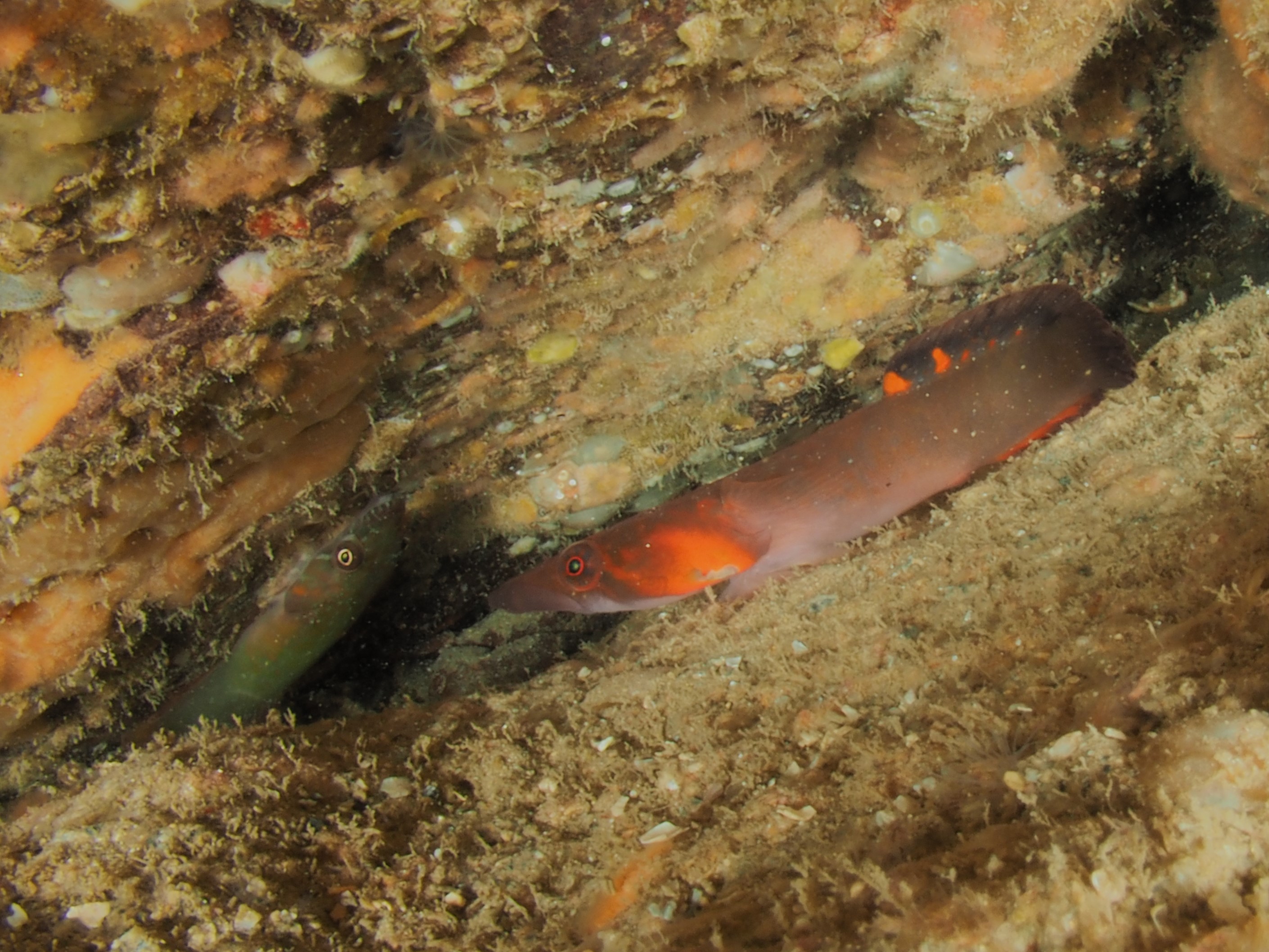 Below photos of various smaller fish hiding in the rock cracks (click for names on the pictures).