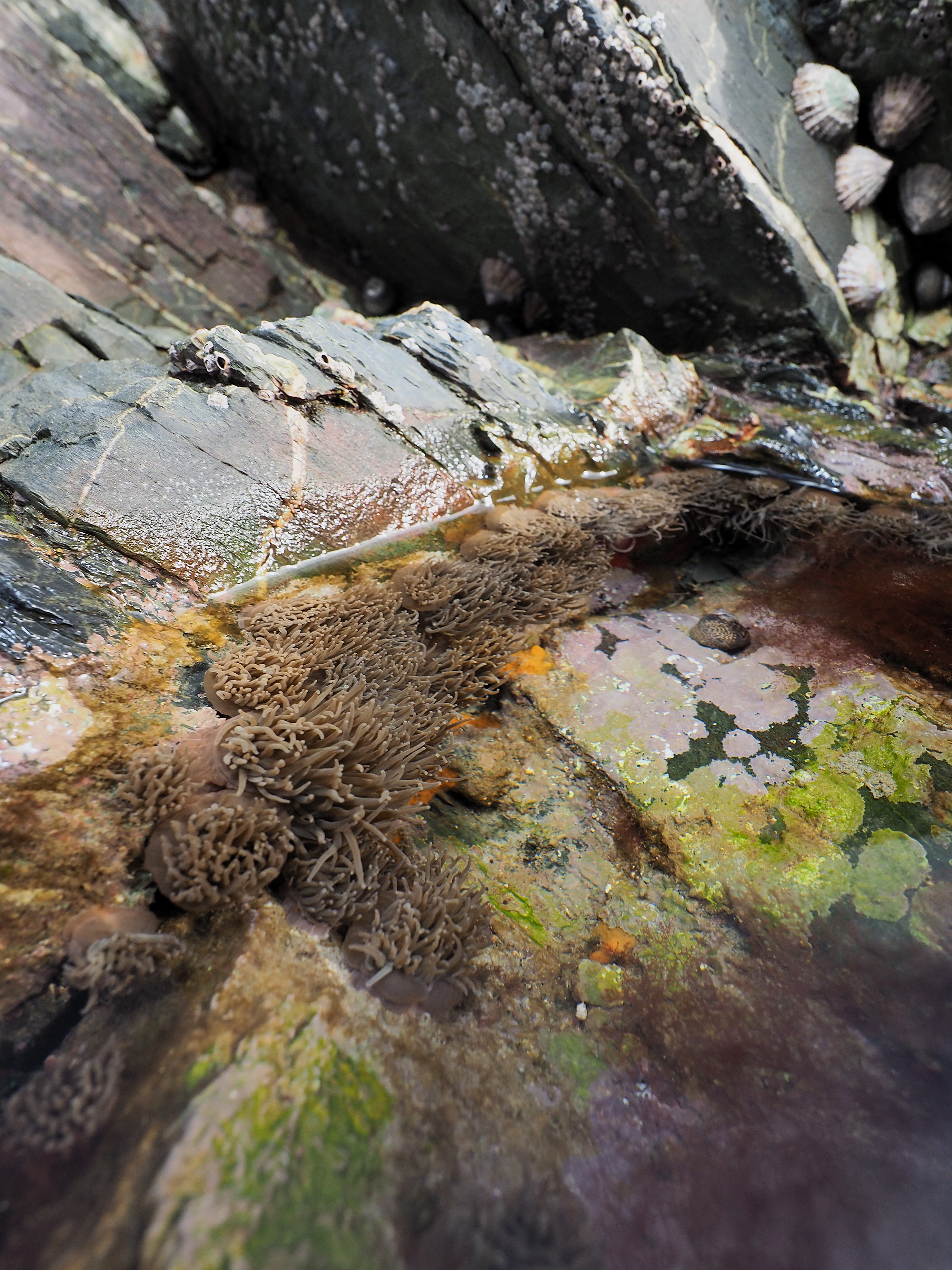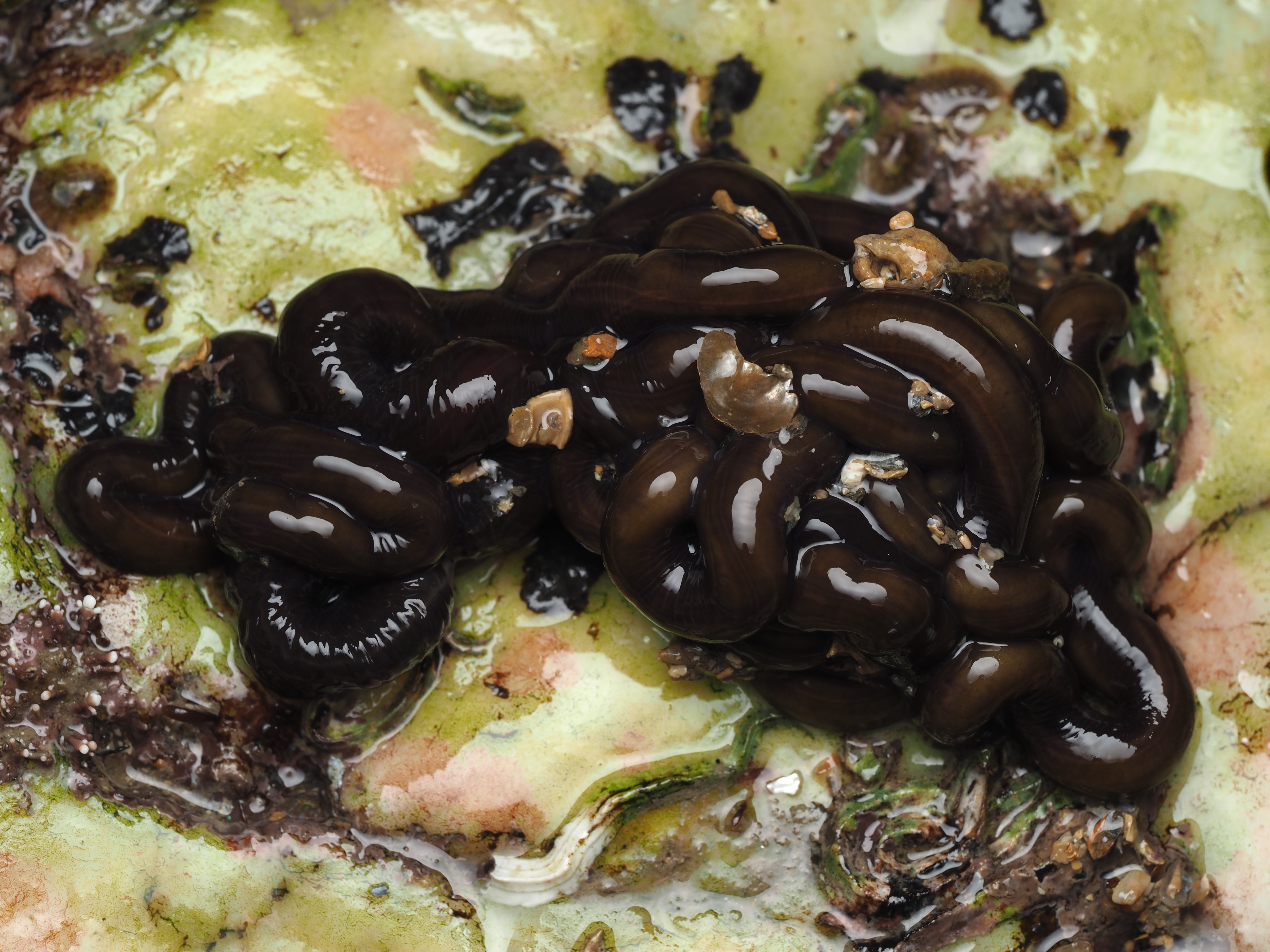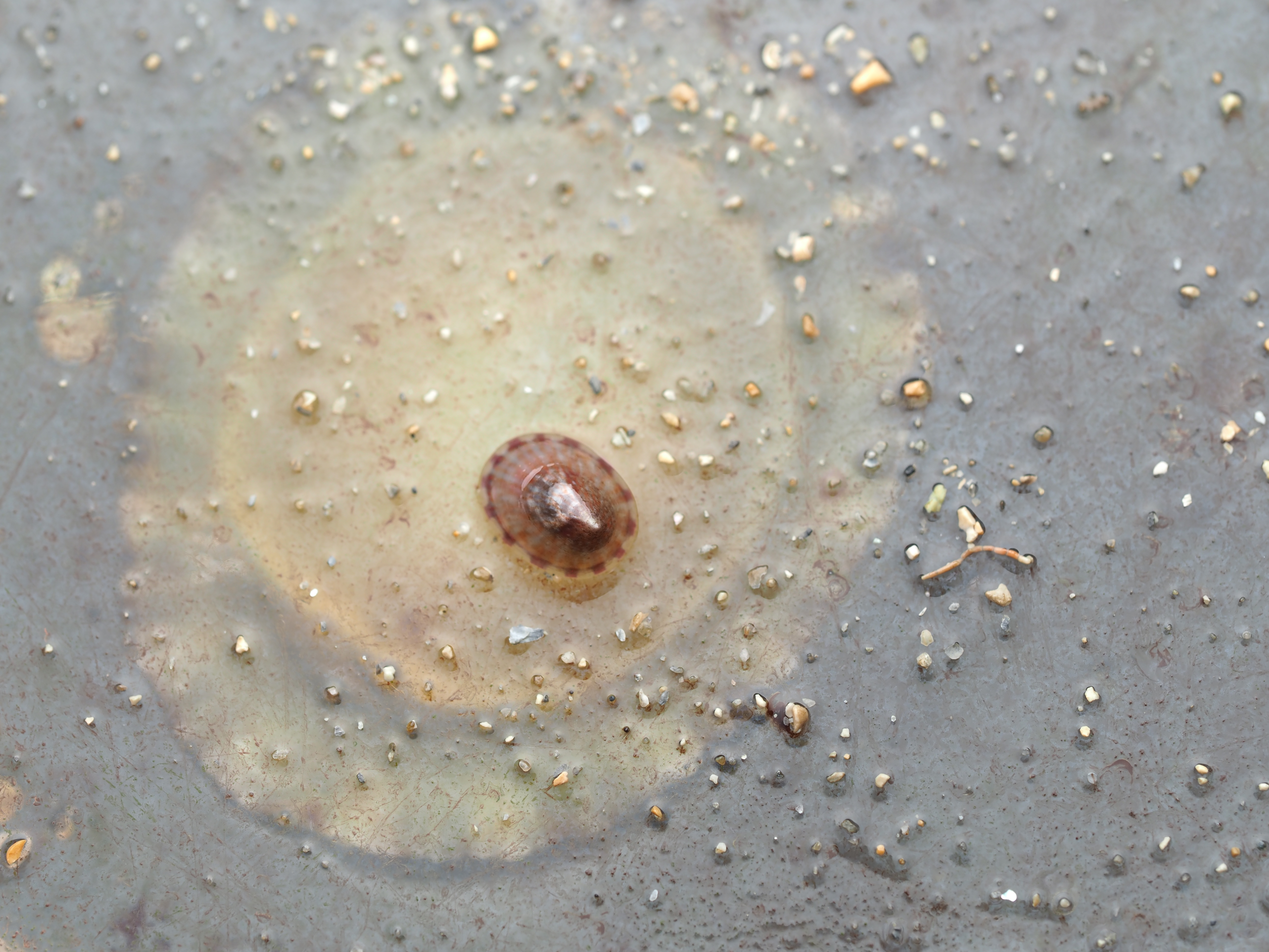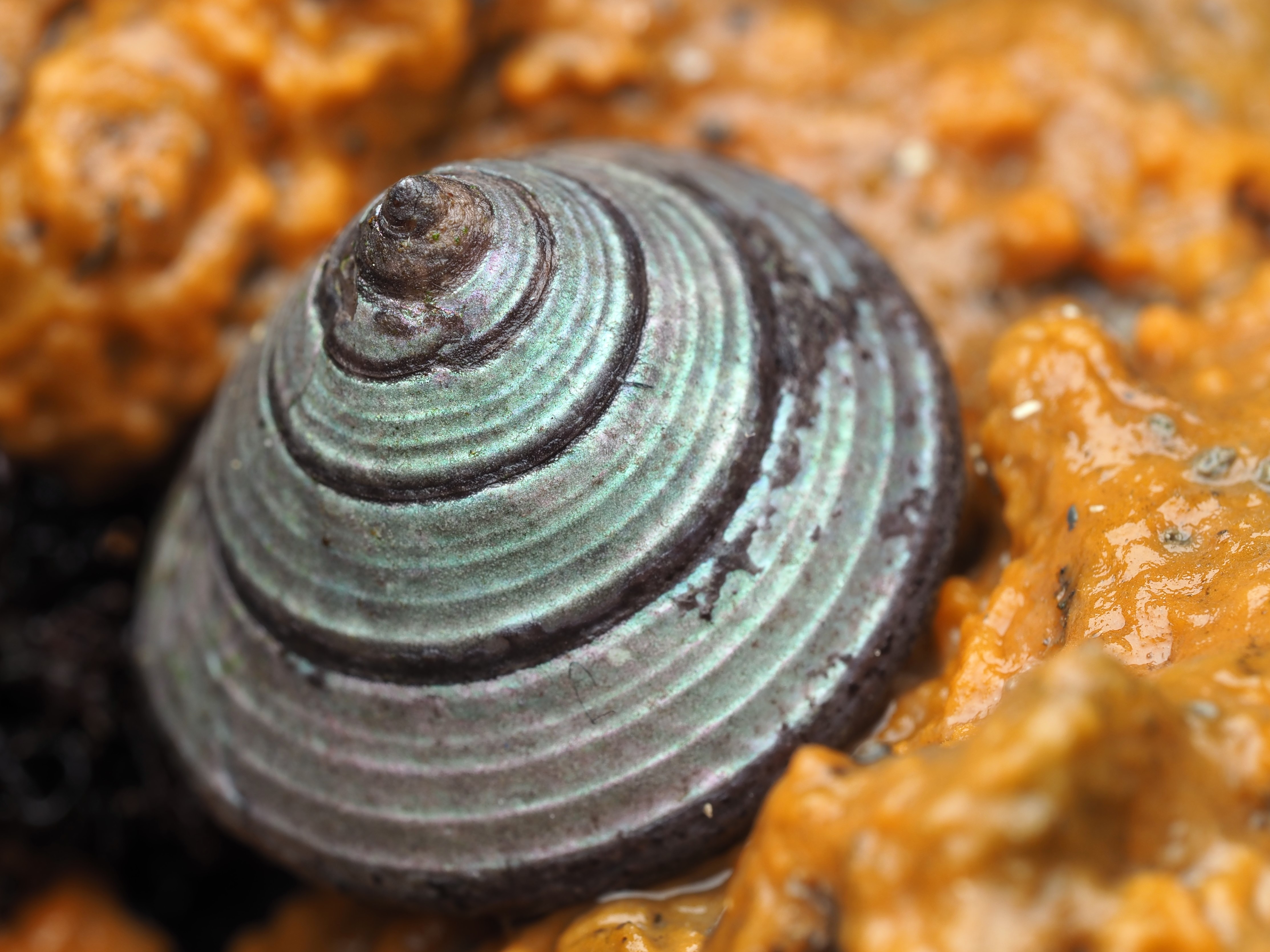 Shelled molluscs are easier to find. Below 1) the ubiquitous Grey Topshell Steromphala cinerarea, 2) the Grooved Topshell Jujubinus striatus and 3) the tiny Rissoa membranacea (faecal pellets on show, even within the shell). The latter two species are strongly associated with seagrass.