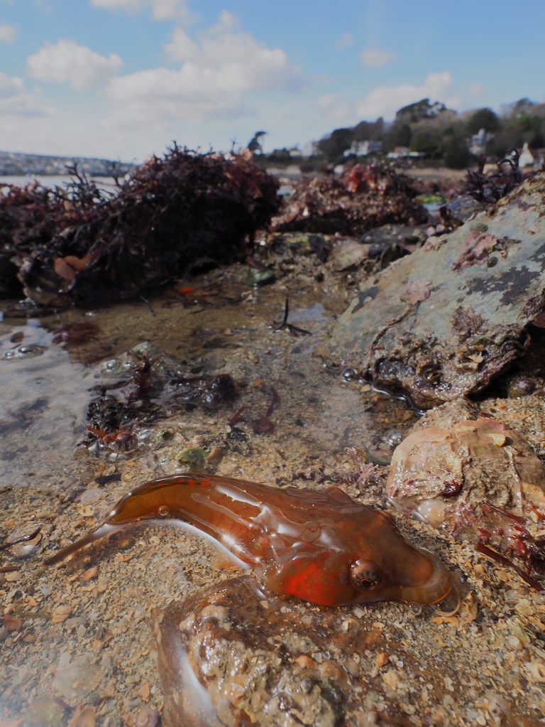 I had a couple of good snorkels at the end of summer in the seagrass beds off my local beach in Flushing. The water at the end of summer is warm enough to go without wetsuit – I just had a weightbelt to let me sink down on the sand at low tide, no fins needed. I managed to do what I normally find very difficult: spot nudibranchs! Mainly one of the more common species, Polycera quadrilineata, but that was fine by me, as they are very beautiful, especially the black colour morph pictured above. I spotted one other species, the egg-eating Favorinus branchialis (with its own eggs also visible). Not great photos, but in my defense they are very small!