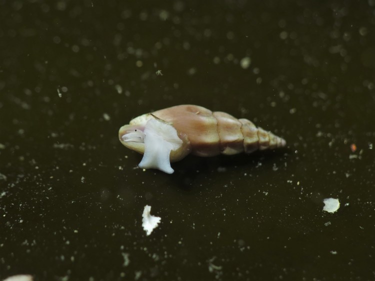 A quick post as it has been a while…..Last Sunday we went on a walk on sunny Carne Beach on the Roseland Peninsula. The primary aim was to get some fresh air, the second to find some dahlia anemones to bring home to the aquarium (we succeeded in that) and the third to do a bit of beach combing. Nothing much washed up, but we did find a number of live Necklace Shells (Euspira catena). These gastropods hunt bivalves in and on the sand; if you see shell valves with a neat little hole in them, you know they were victims of this predator. They are name after their necklace-shaped, sandy egg capsules (see here).