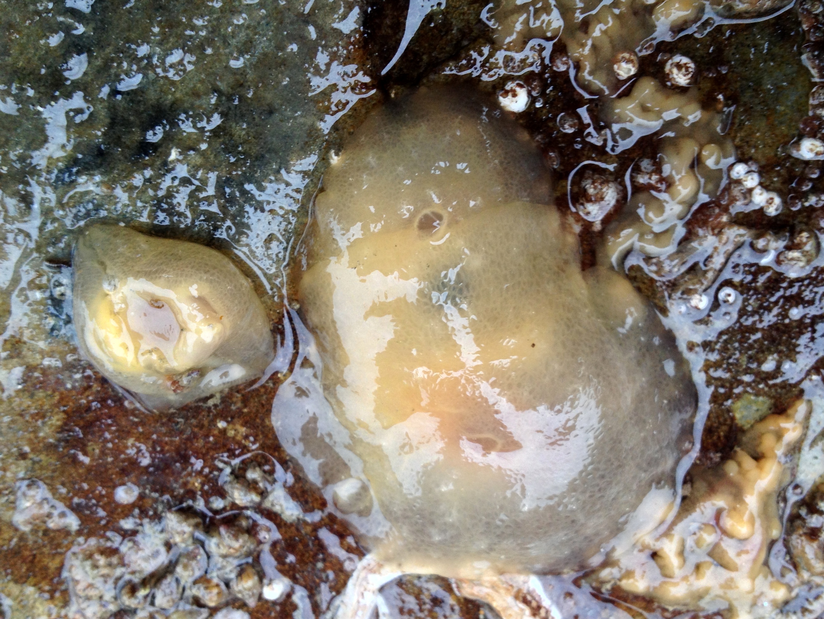A very special find (shown to me by fellow rockpool photography enthusiasts Martin and Greg) were two Goby egg-eating seaslugs Calma gobioophaga. This tiny species can only be found on the goby eggs it eats. With such a ‘niche niche’ and with very good camouflage it is no wonder that reports of this species are rare. A fun fact: its protein-rich diet means it does not have to poo and it therefore does not have an anus…The rock with the eggs and nudis was very shallow and so it was a challenge to get the port of the camera housing under water. Luckily Greg assisted with pointing out the nudi and holding my strobe in place. Freshly hatched goby fry could be seen hovering above the eggs (the fact that a predator was munching through their brothers and sisters might have triggered some of the hatching). The cerata (the fleshy lobes on the nudi’s back) seem to have two goby eyes in them to make them better blend in!
