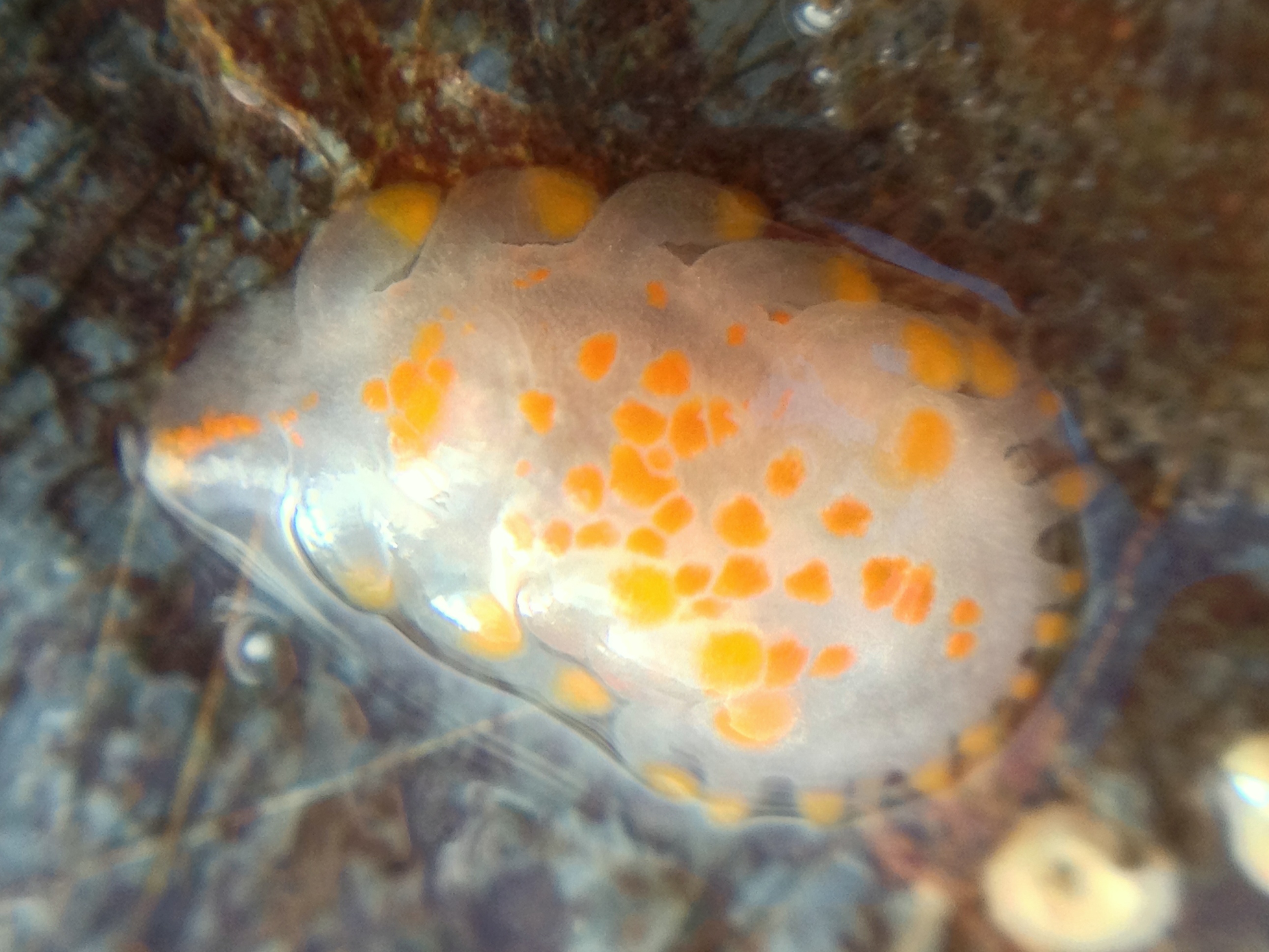 Last weekend we headed out to the rock pools inbetween Gyllyngvase (‘Gylly’) beach and Swanpool Beach (very close to the usual Castle Beach spot). Very low tides and lots of sun: perfect! As always there were some critters about that I had not seen before. An Orange-clubbed sea slug Limacia clavigera; quite small as the second picture shows: