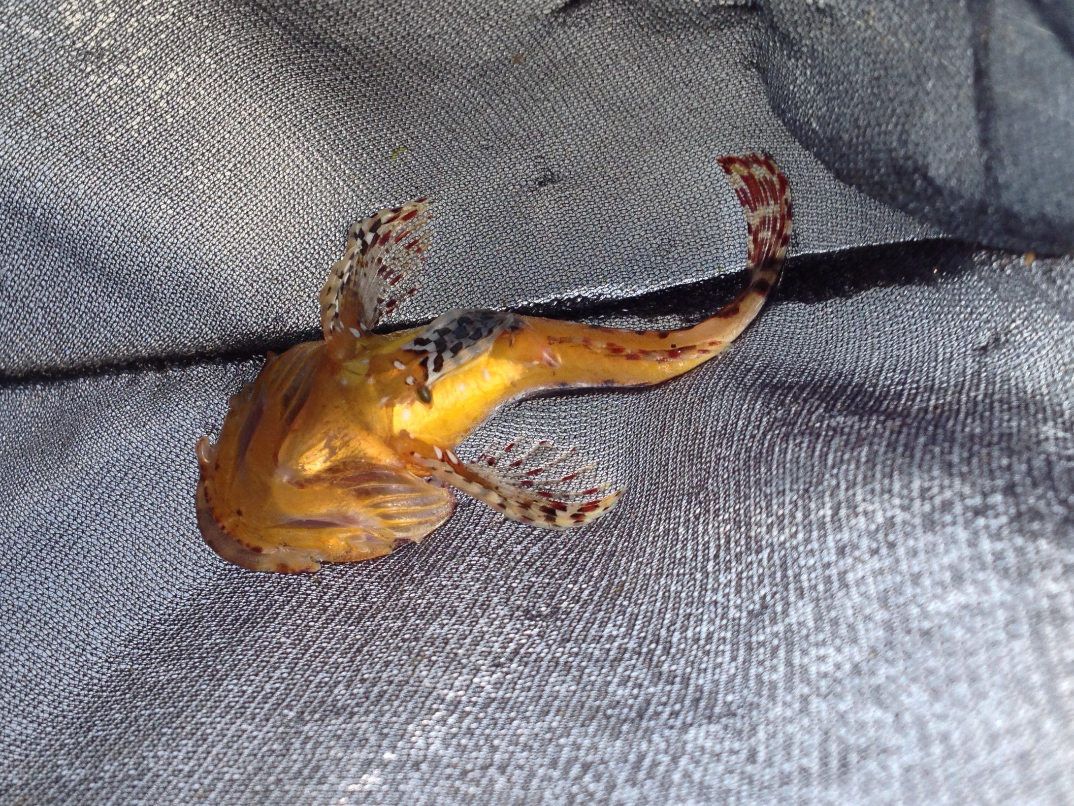 A very cool find: a Montagu’s sea snail Liparis montague. This small fish is scaleless and has a sucker on its belly (like the Clingfish). it looks a bit like a tadpole: