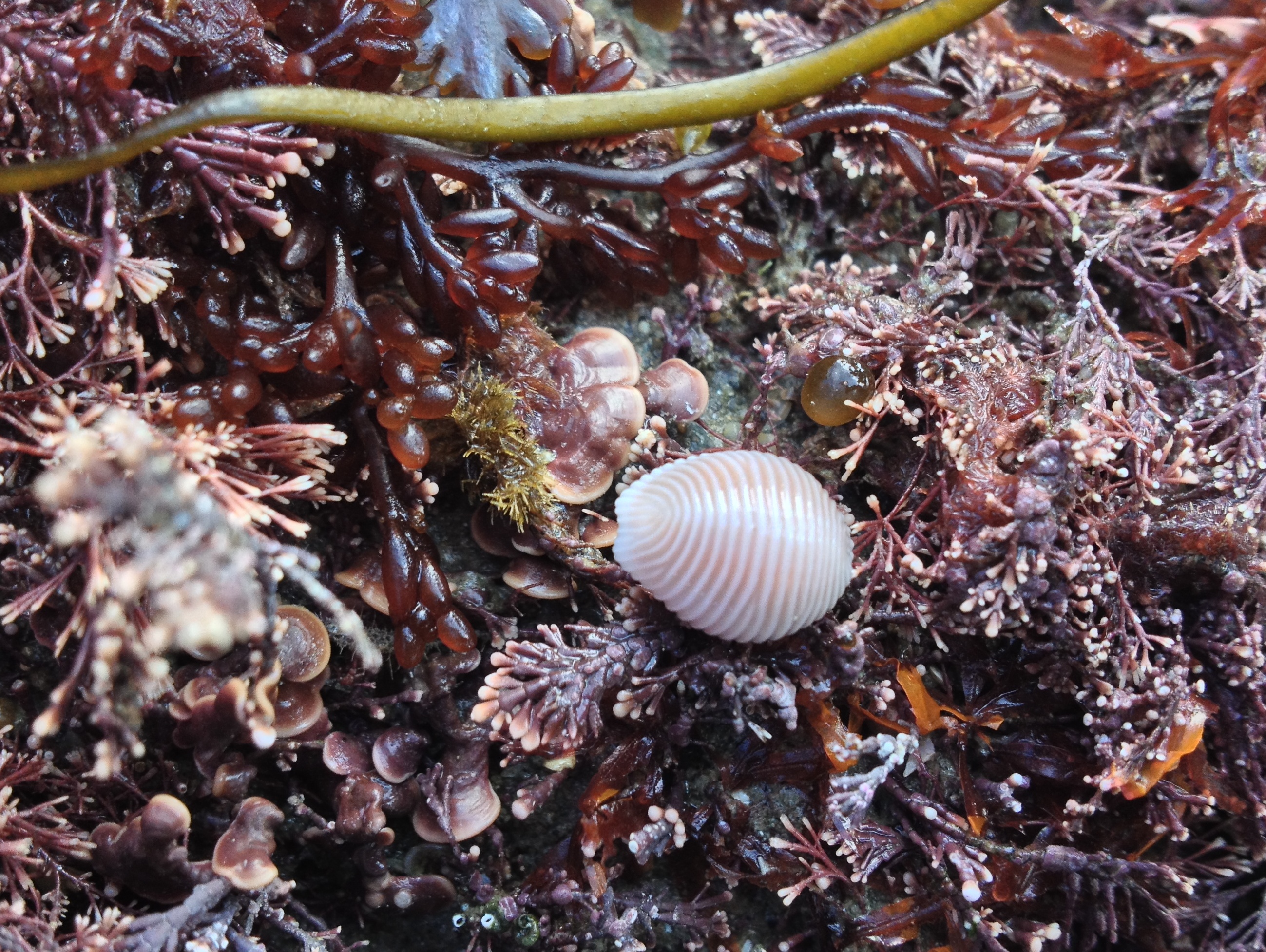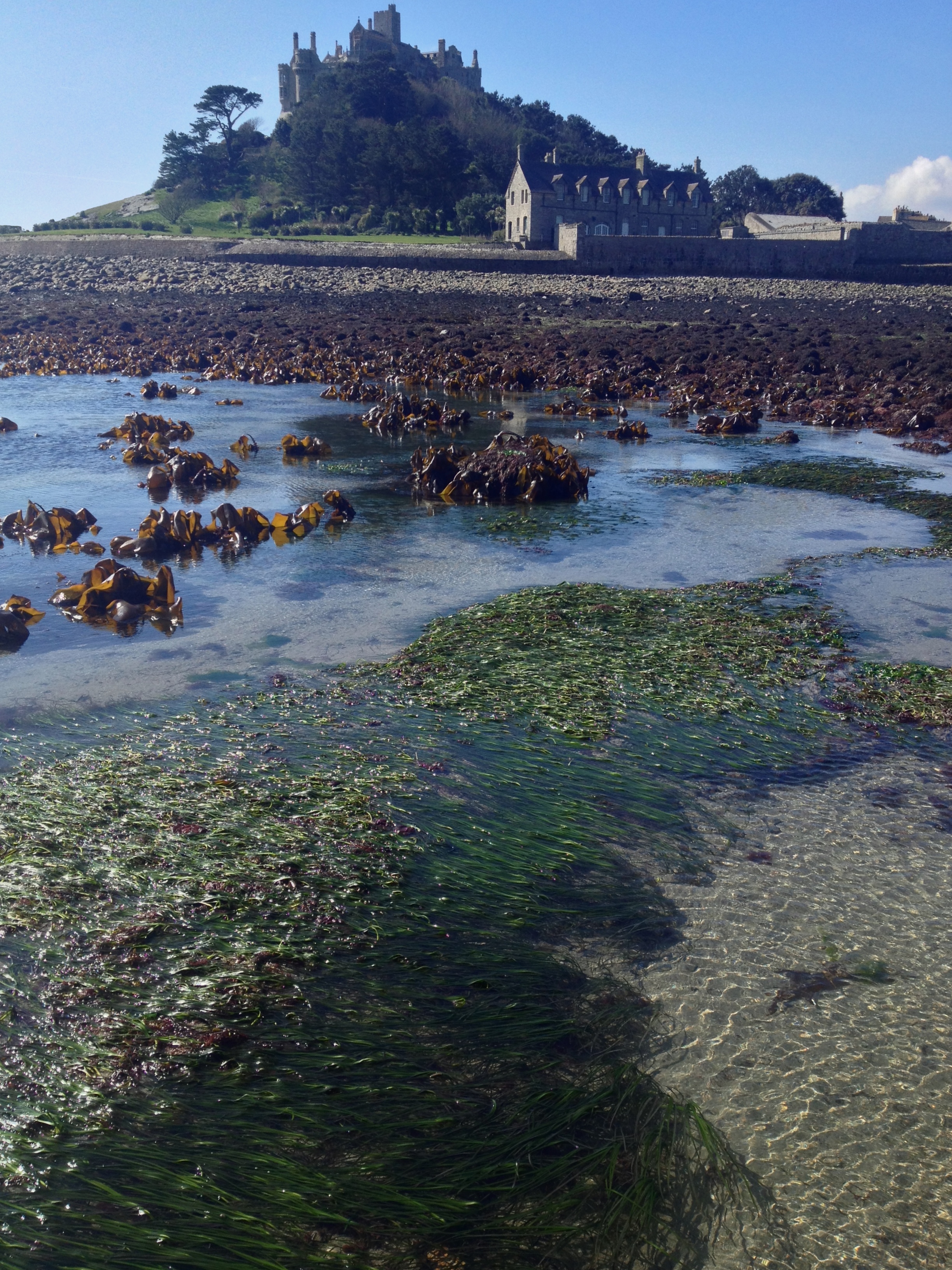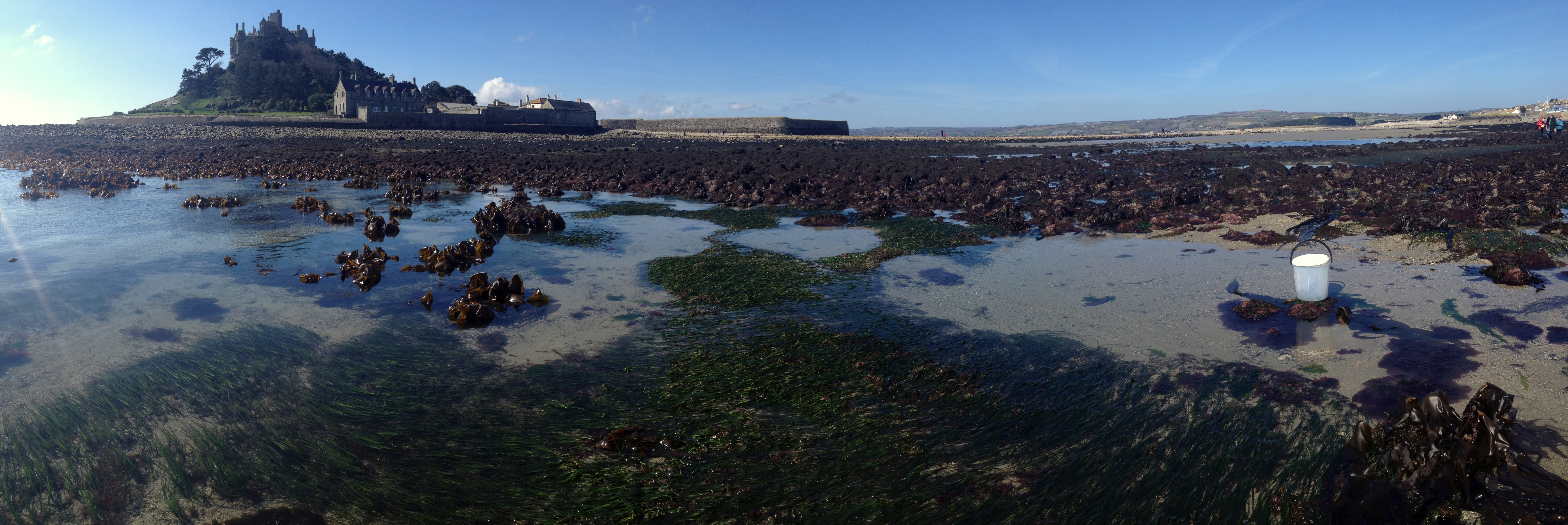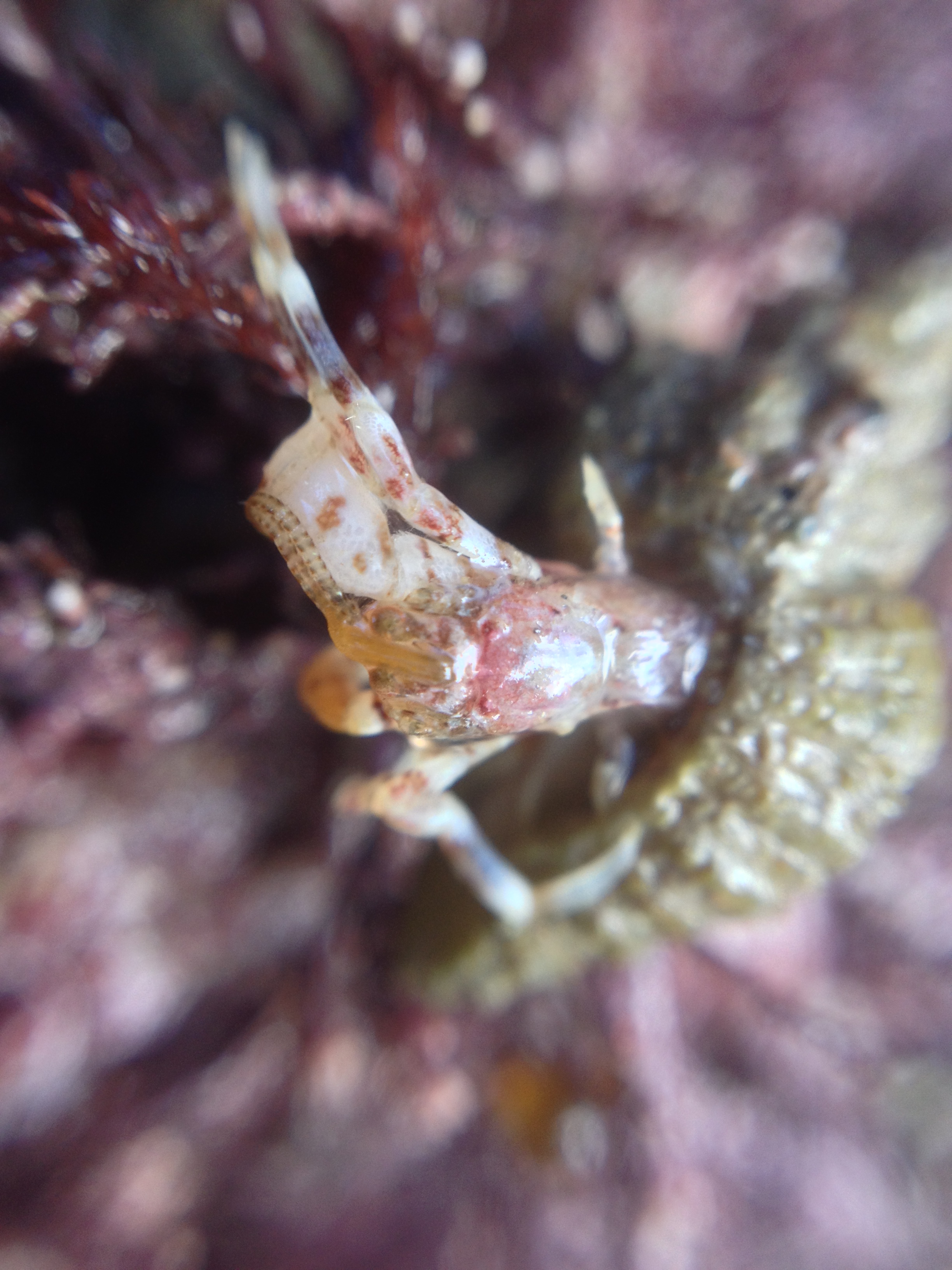 The lowest tide of the century so far, on a Saturday, with beautiful weather and on a stunning location: what could go wrong? Very little! St. Michael’s Mount, Marazion, Mount’s Bay is one of the most beautiful spots in Cornwall and an excellent site for rock pooling with a mixture of eelgrass beds, rocks and sandy expanses. I felt like a kid in a candy shop: wanting to turn every stone, photograph every seaweed and inspect every gully before the tide would come back in. I needed to collect some more Clawed fork weed Furcellaria lumbricalis for a cool student project. That was abundant so easy to sort. Chock full of Pheasant shells Tricolia pullus. One other amazing thing was that the place was littered with Bull huss Scyliorhinus stellaris (a.k.a. Nursehound, a.k.a. Large-spotted dogfish) mermaids purses. Mount’s bay is an important breeding ground for these sharks. The yolk was easy to spot, but the embryo’s still to small to be seen. There were loads of pretty seaweeds gently waving among the eelgrass in the crystal clear water. I saw a bright green Chameleon prawn swimming about, but the picture I took was a bit underwhelming.