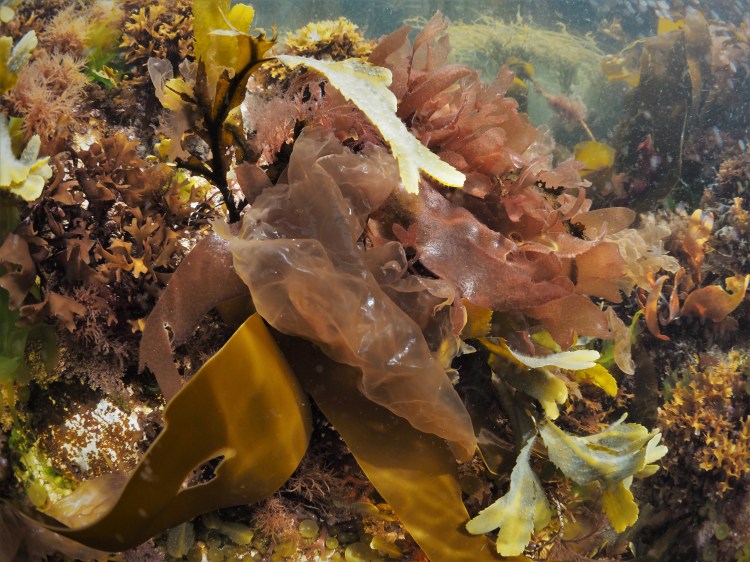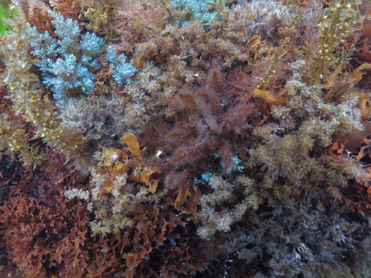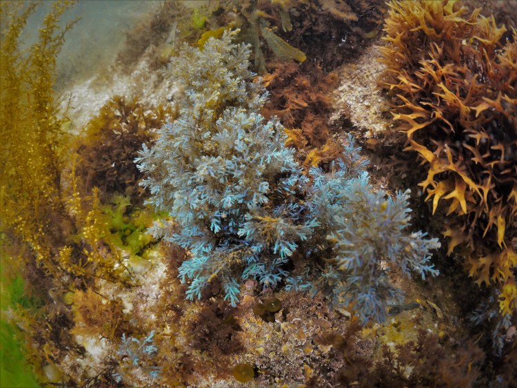 Above, Osmundea osmunda (probably), which has a very nice blueish (‘glaucus’) tinge (I need to take some close-ups of that next time). In the following photo, a whole tangle of species, mainly Hairy sand weed
