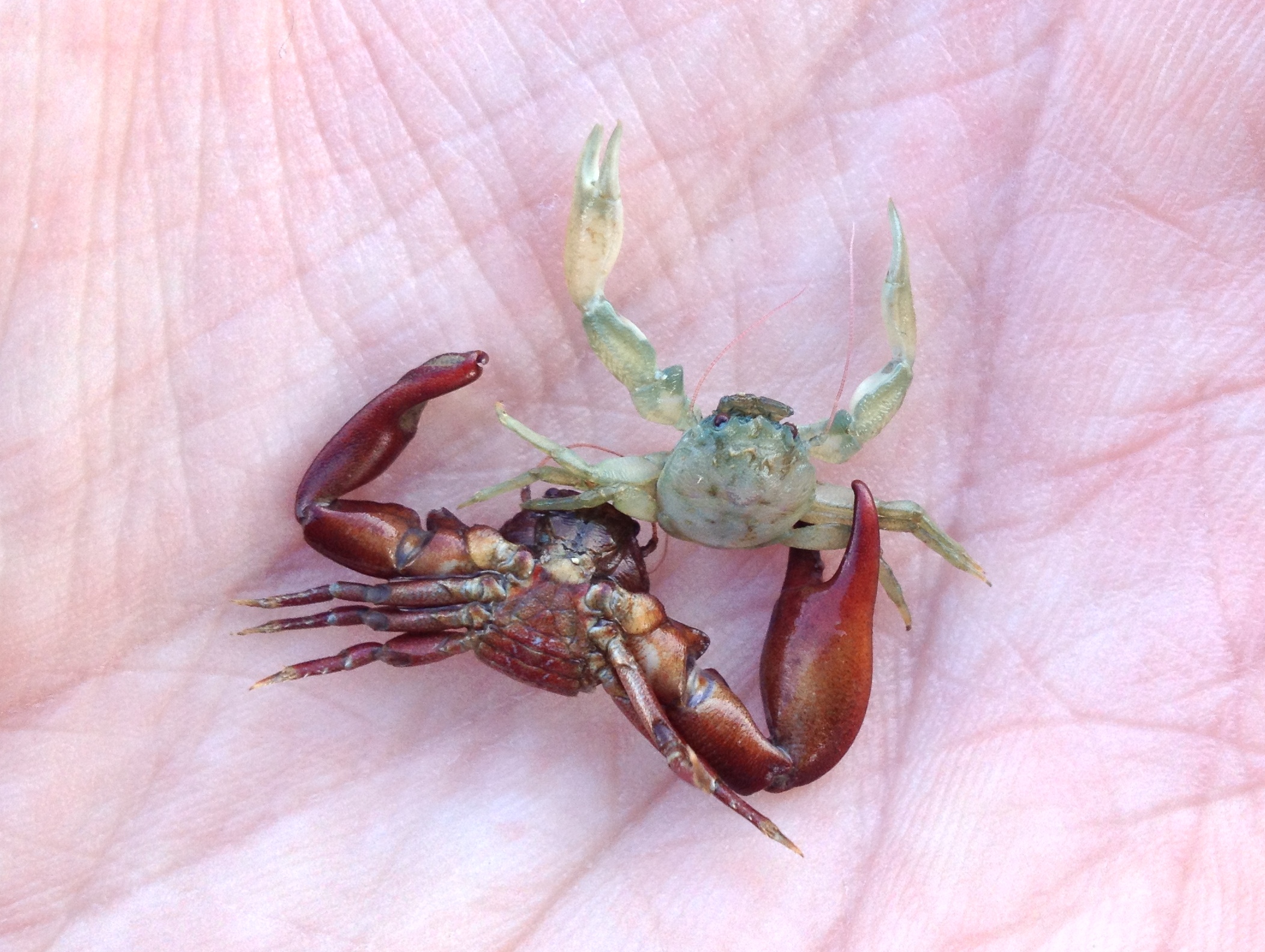 Although the tide was quite low, no special sublittoral species were encountered, but everything time you go out you still see something new. For instance, a newly moulted Furrowed crab, Xantho incisus pink and soft next to its old brown carapace: IMG_5469