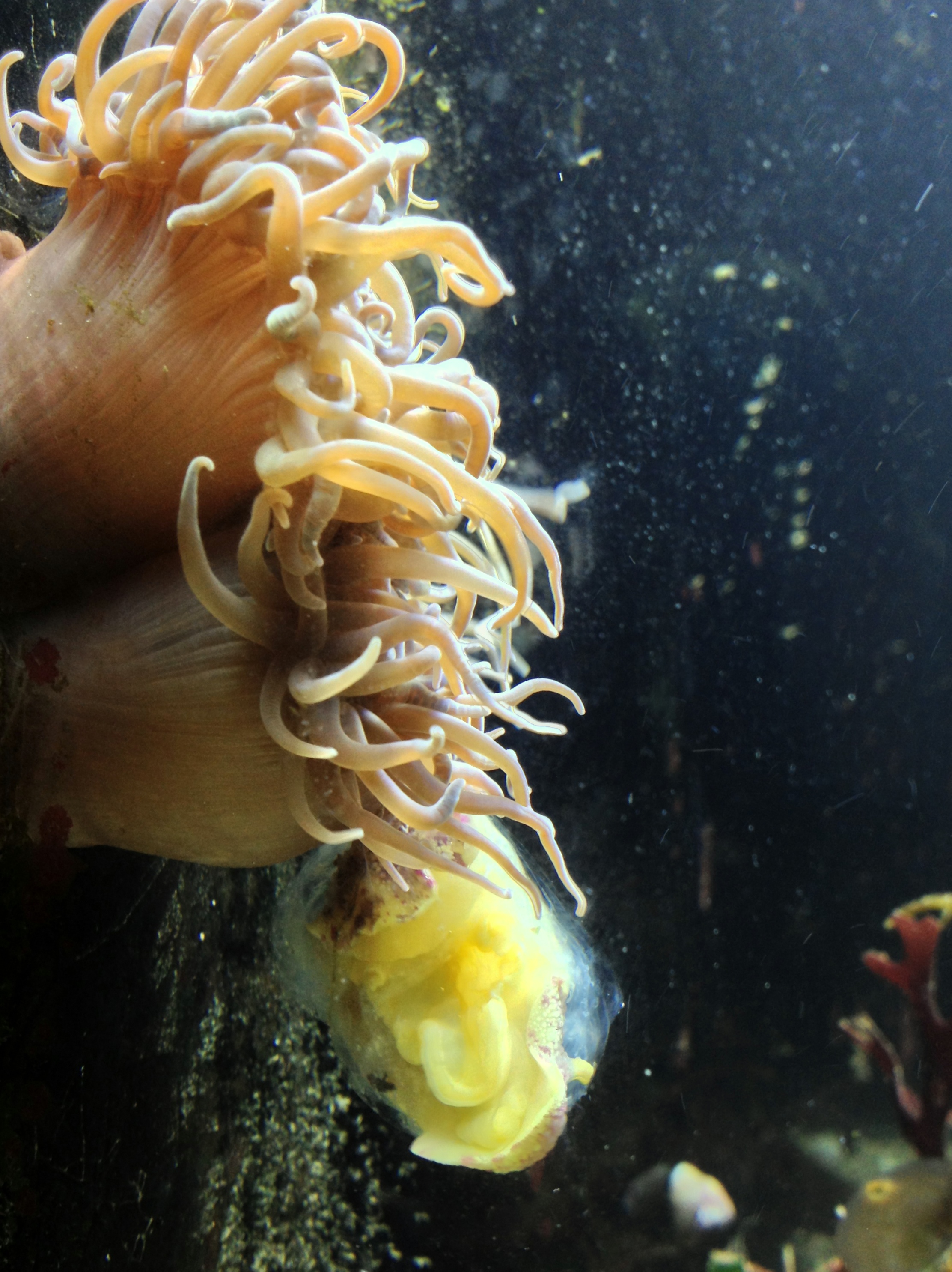 IMG_8115One of the Sea lemons managed to get caught by a Snakelocks anemone….however, it produced copious amounts of slime and it was eventually spat out!