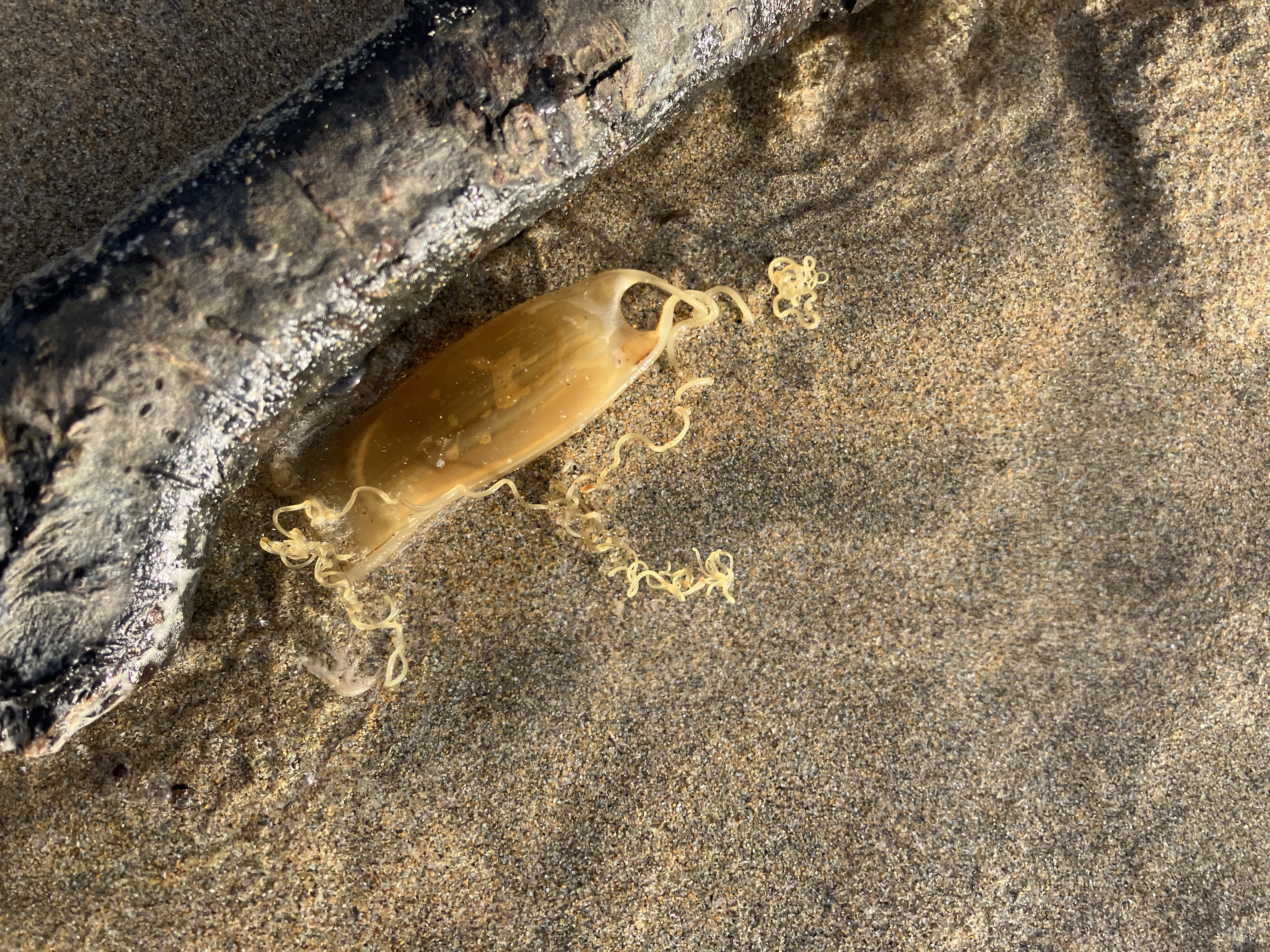 It was a glorious day last Sunday so time to get outdoors. After a pitstop at Windmill Farm (see here), we sat down at Kennack Sands Beach. I brought my scuba kit as I wanted to have a little looksee under water. I could not find any (shore)diving reports on this location, but I had snorkeled here a few times before and it looked interesting, a serpentine reef parting the beach in two. The tide was high and there was a bit of a swell so it took some swimming out – even so I never got any deeper than seven meters. I was a bit disappointed at first: the sands were shifting and there was no chance of finding interesting flatfish or molluscs there, the rocks has furbelows kelp on them but otherwise nothing too special. I then found a slightly deeper gully and took a closer look at the rocks and found loads of interesting little things, even two tiny dead man’s fingers soft coral!