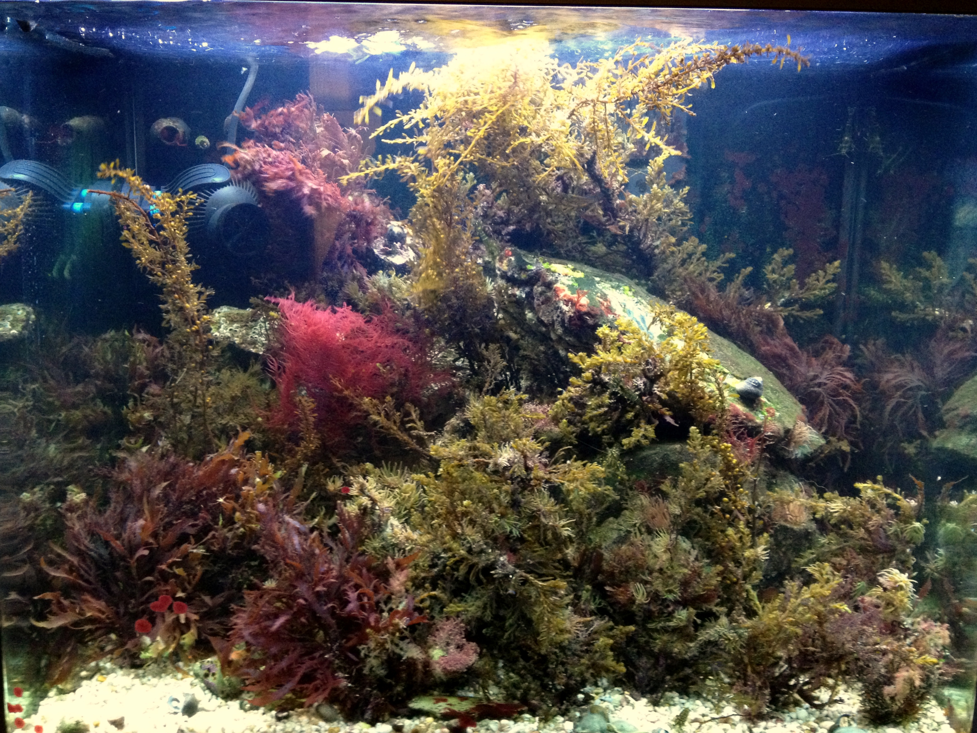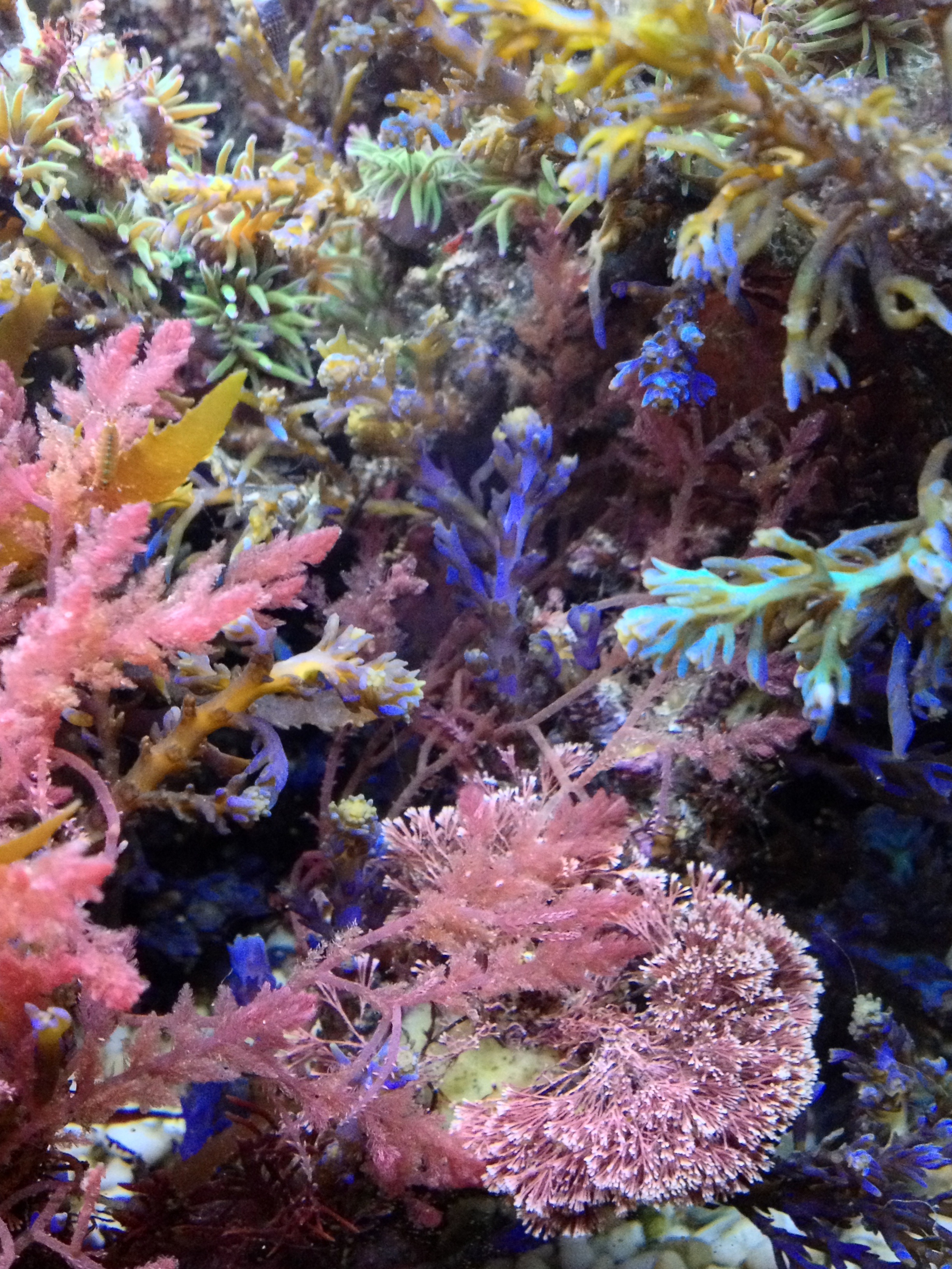 The main thing that disappointed me though is that the Bushy rainbow wrack steadily lost its iridescent colors and turned into the brown of the other Bushy wrack species. The fact that I had bright blue, green and purple in my aquarium was the most amazing thing about it. Before and after pics: